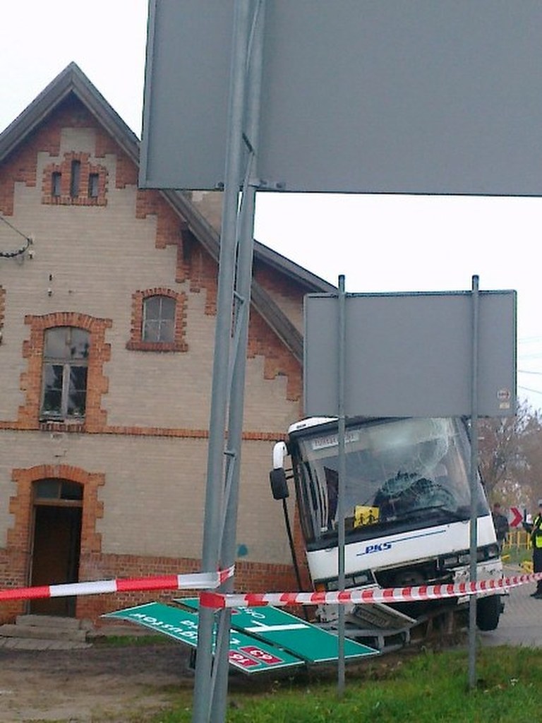 Autokar z wycieczką uderzył w budynek