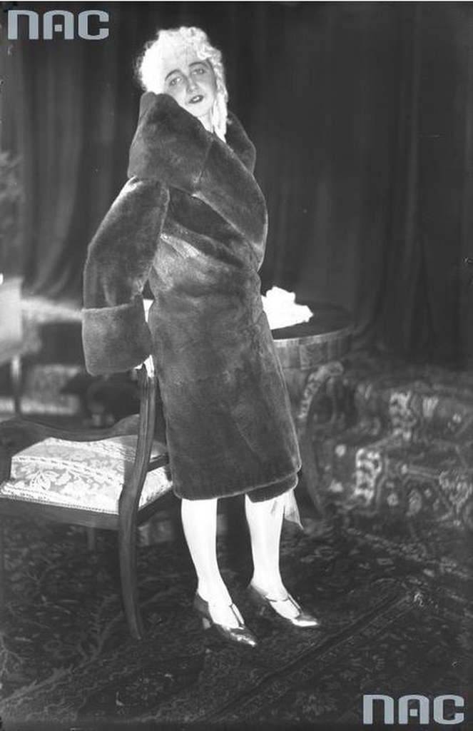 Modelka prezentująca płaszcz / Fot. Narodowe Archiwum Cyfrowe