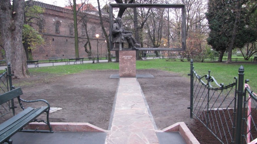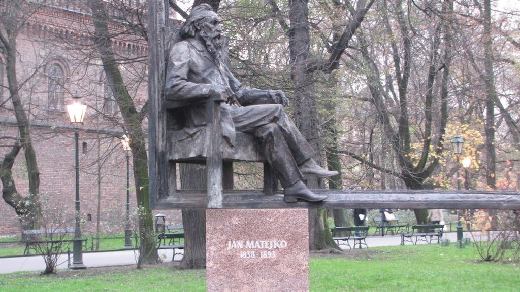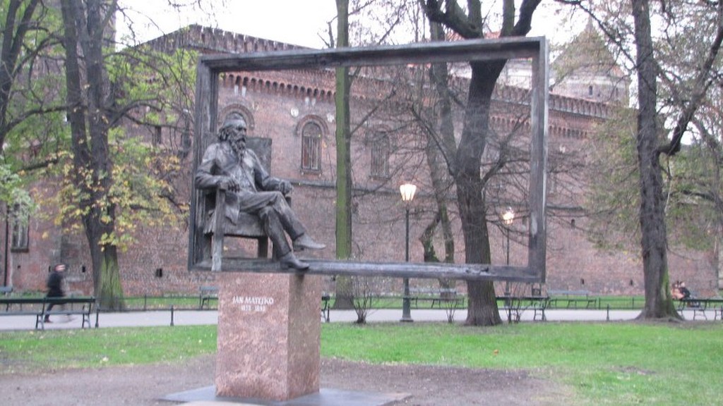 Jan Matejko doczekał się wreszcie swojego pomnika w Krakowie. Monument odsłonięty został we wtorek niedaleko Akademii Sztuk Pięknych. Uczelnia i plac, na której się znajduje, nosi imię słynnego malarza. Pomnik przedstawia wielką ramę obrazu, którego naturalnym tłem są planty. W jego lewym dolnym rogu, na wygodnym fotelu siedzi sam mistrz Matejko i obserwuje Akademię Sztuk Pięknych. Pomnik stoi w miejscu historycznym, kiedyś był tu grób upamiętniający żołnierzy Armii Czerwonej ale nie wiele osób wie, że znajduje się przy trasie, którą Matejko codziennie pokonywał. Mieszkał on bowiem na ulicy Floriańskiej i aby dojść na ASP, przechodził obok Barbakanu i skwerku na plantach.
