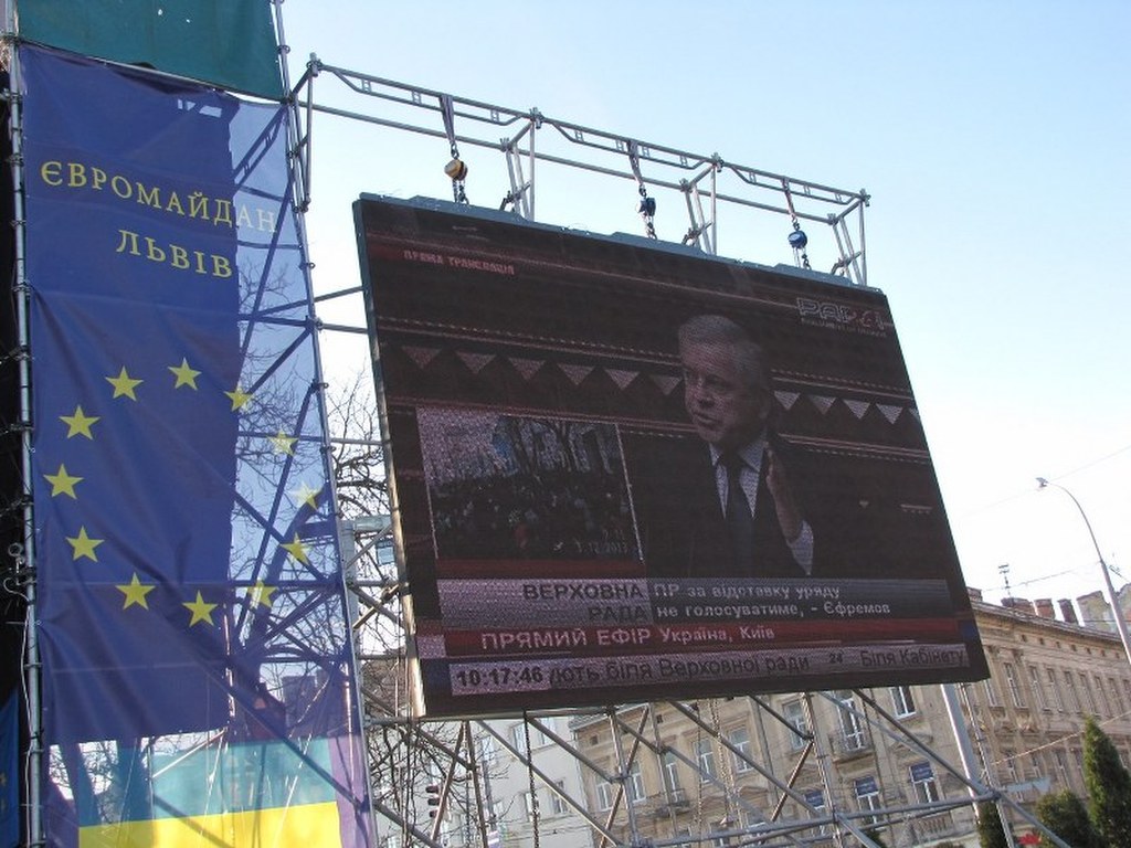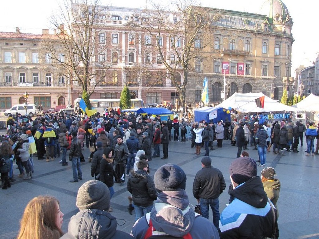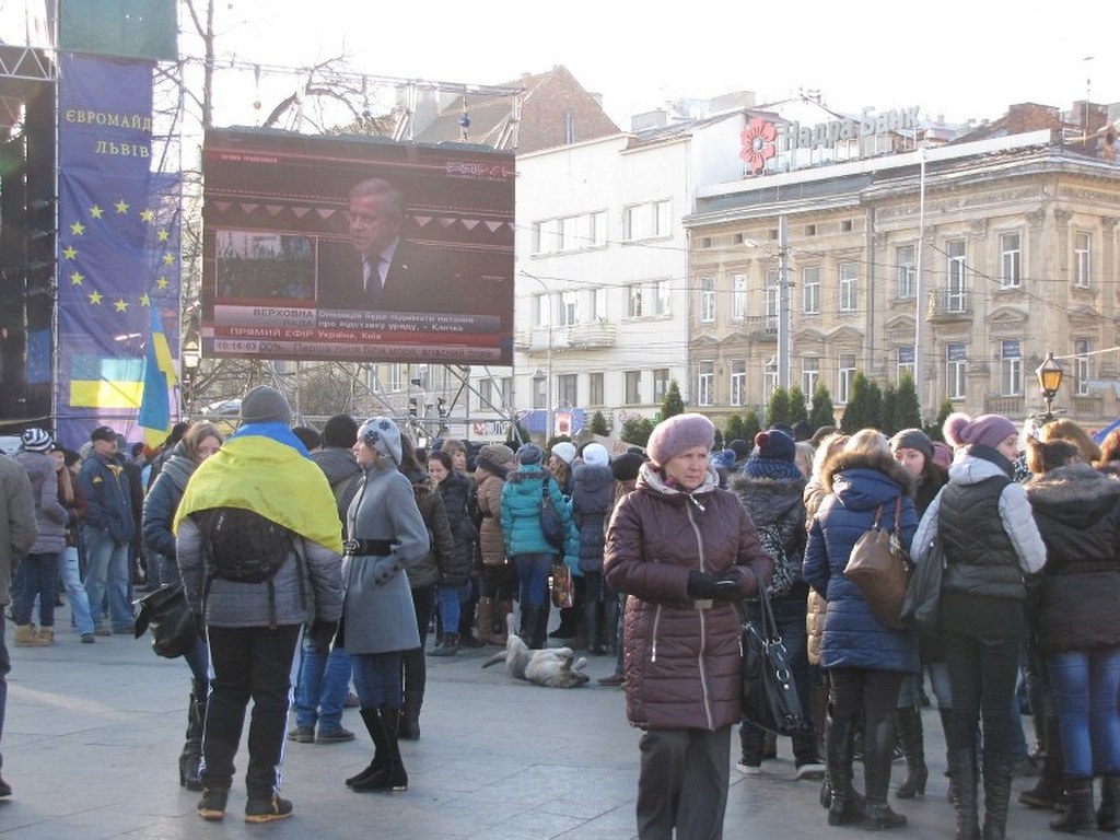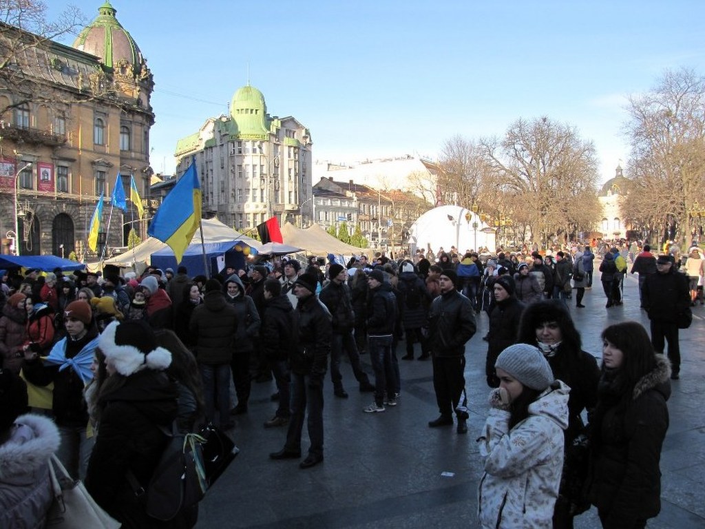 Po Lwowie jeżdżą samochody z ukraińskimi flagami. Na placu Swobody w samym centrum cały czas jest co najmniej tysiąc osób. Najwięcej wśród nich jest ludzi młodych: nastolatków i studentów. Mówią, że będą tu przychodzić tak długo, jak będzie trzeba.
