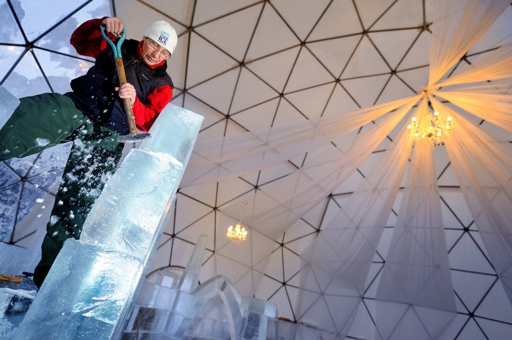 Lodowa kaplica, a właściwie cały lodowy pałac, to nowa atrakcja słowackich Tatr. Przez ostatnie tygodnie na szczycie Siodełka niedaleko Starego Smokowca stawiało go 12 rzeźbiarzy z 28 ton lodu, lodu dodajmy, sprowadzonego z Polski, z Wrocławia. Jak podkreślają Słowacy, to pierwszy taki pałac wybudowany w Europie Środkowej, nawet w Alpach do tej pory stawiano mniejsze lodowe budowle.