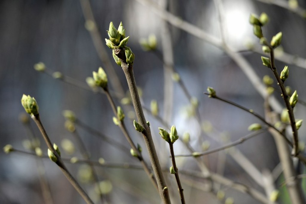 Pierwsze pączki liści na krzewach bzu na jednej z posesji w Przemyślu. / fot. Darek Delmanowicz/PAP / PAP