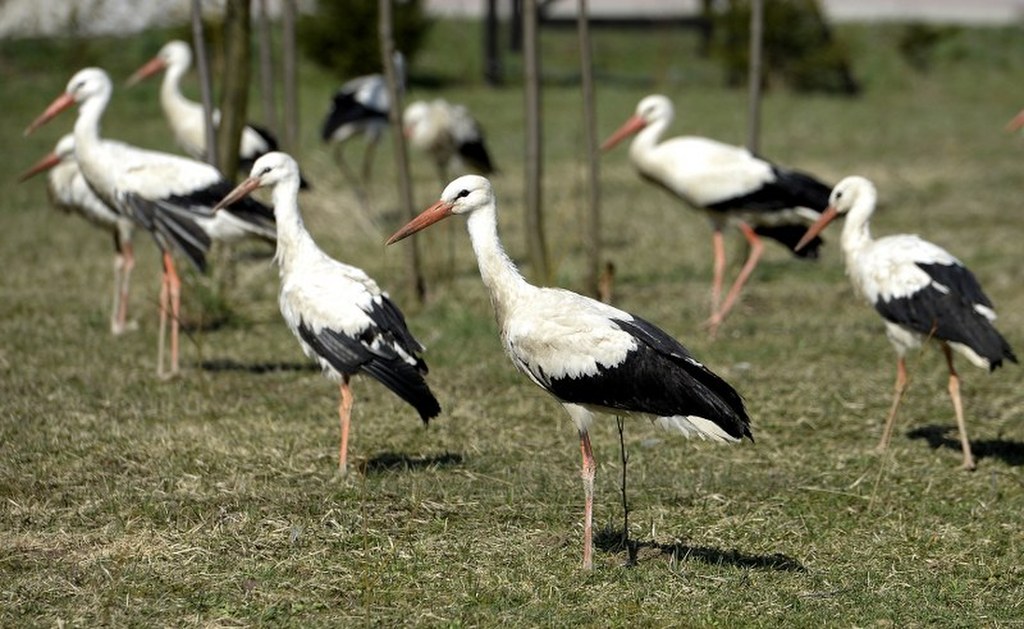 Bociany z Ośrodka Rehabilitacji Zwierząt Chronionych w Przemyślu przeczekały zimę i doczekały się wiosny. / fot. Darek Delmanowicz/PAP / PAP