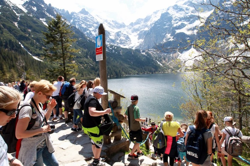 Piękna słoneczna pogoda sprawiła, że na najpopularniejszych tatrzańskich szlakach zrobiło się tłoczno. Głównie za sprawą wycieczek szkolnych, których największe nasilenie przypada na maj.