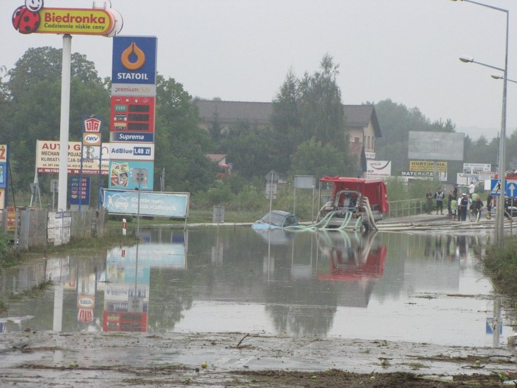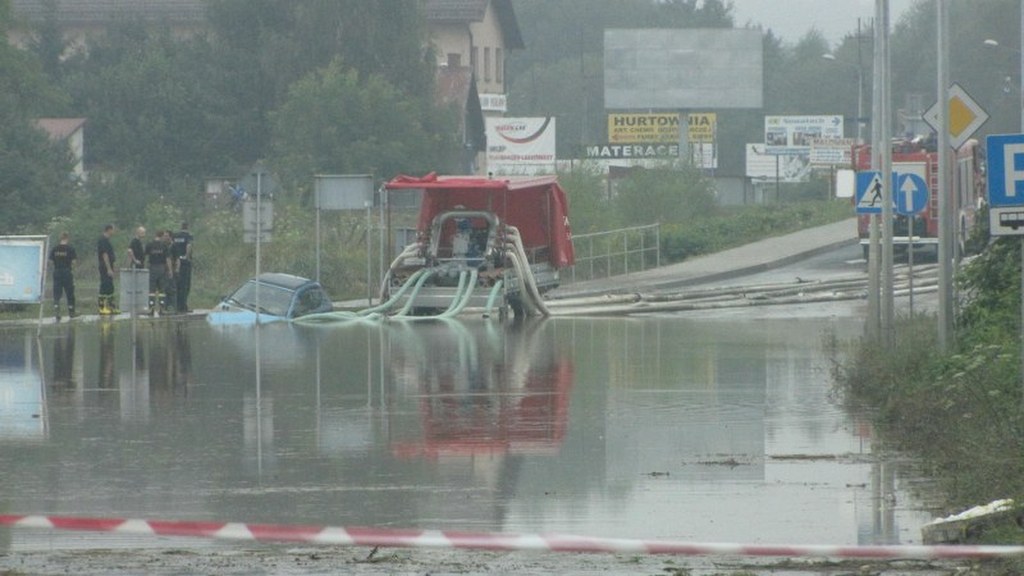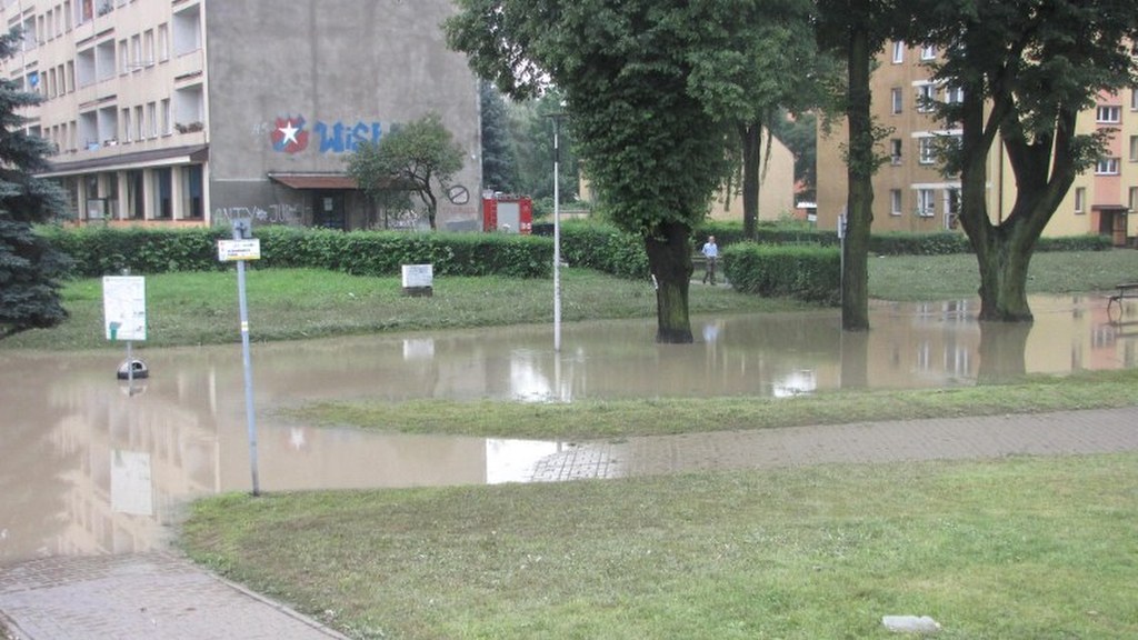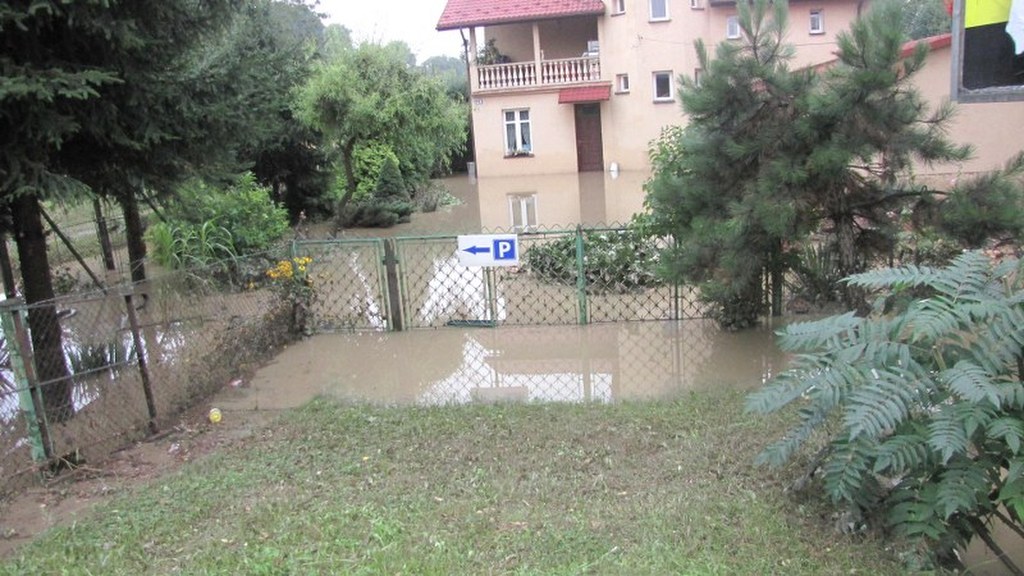 Zalane domy i ulice. Krajobraz po ulewie w Wadowicach