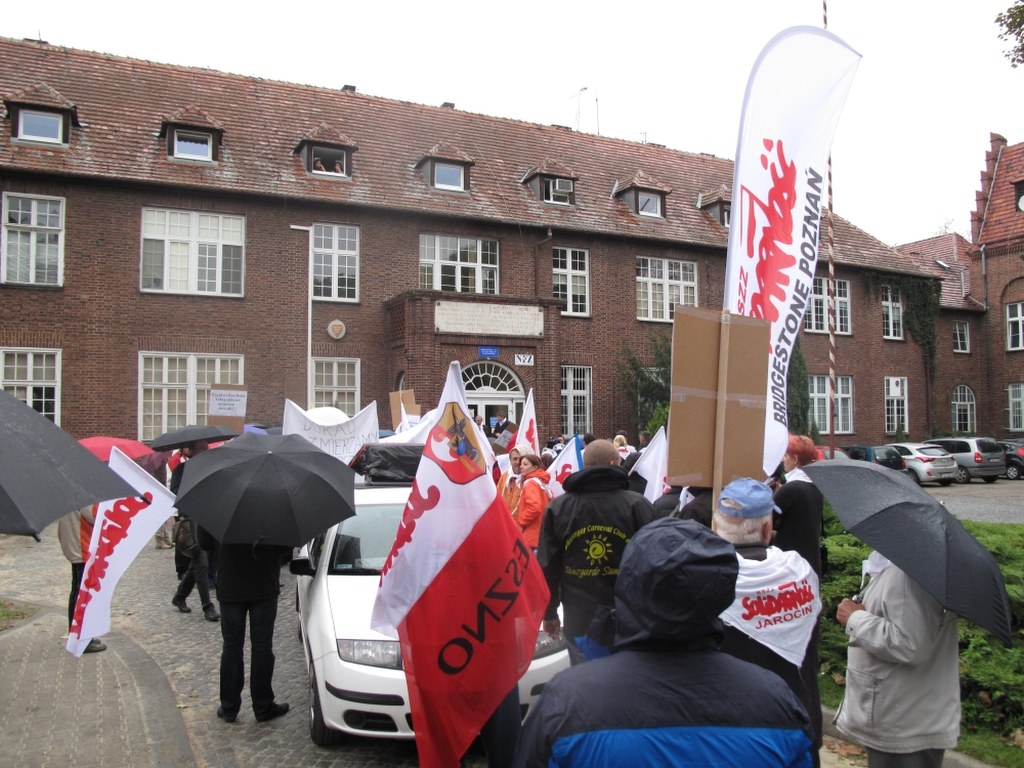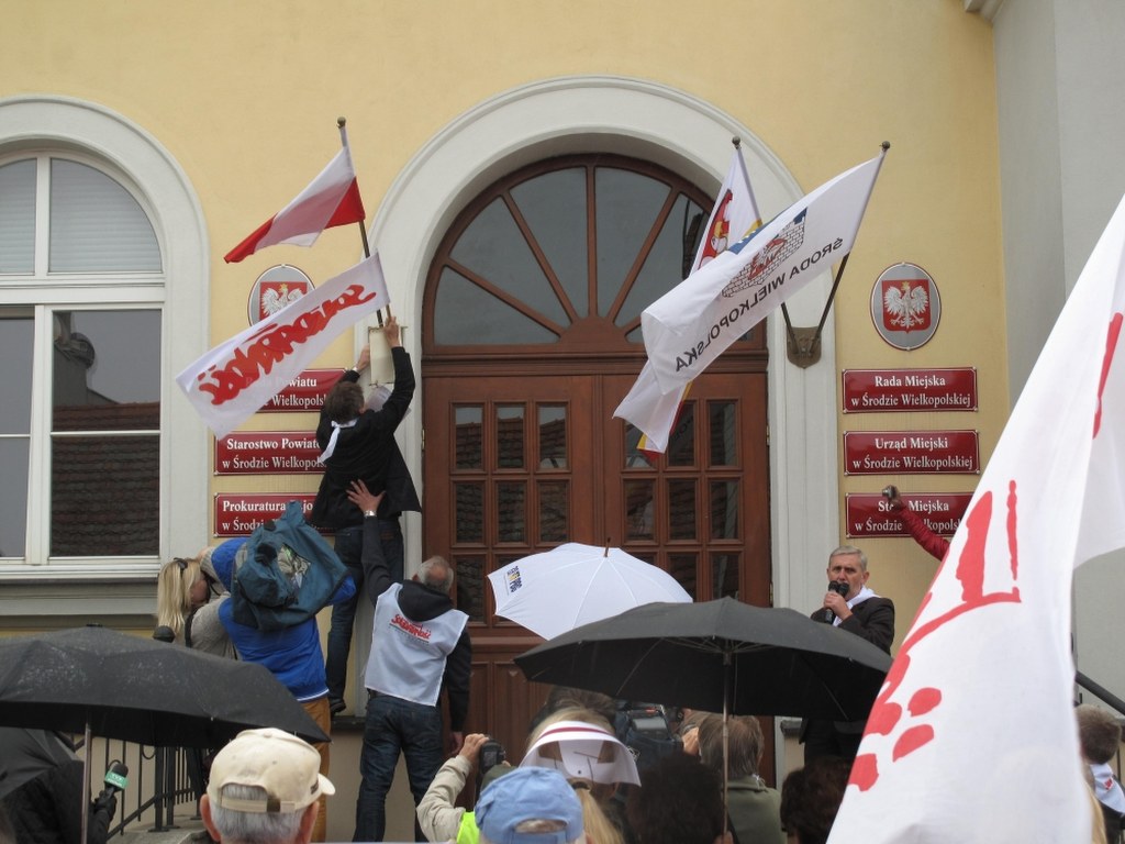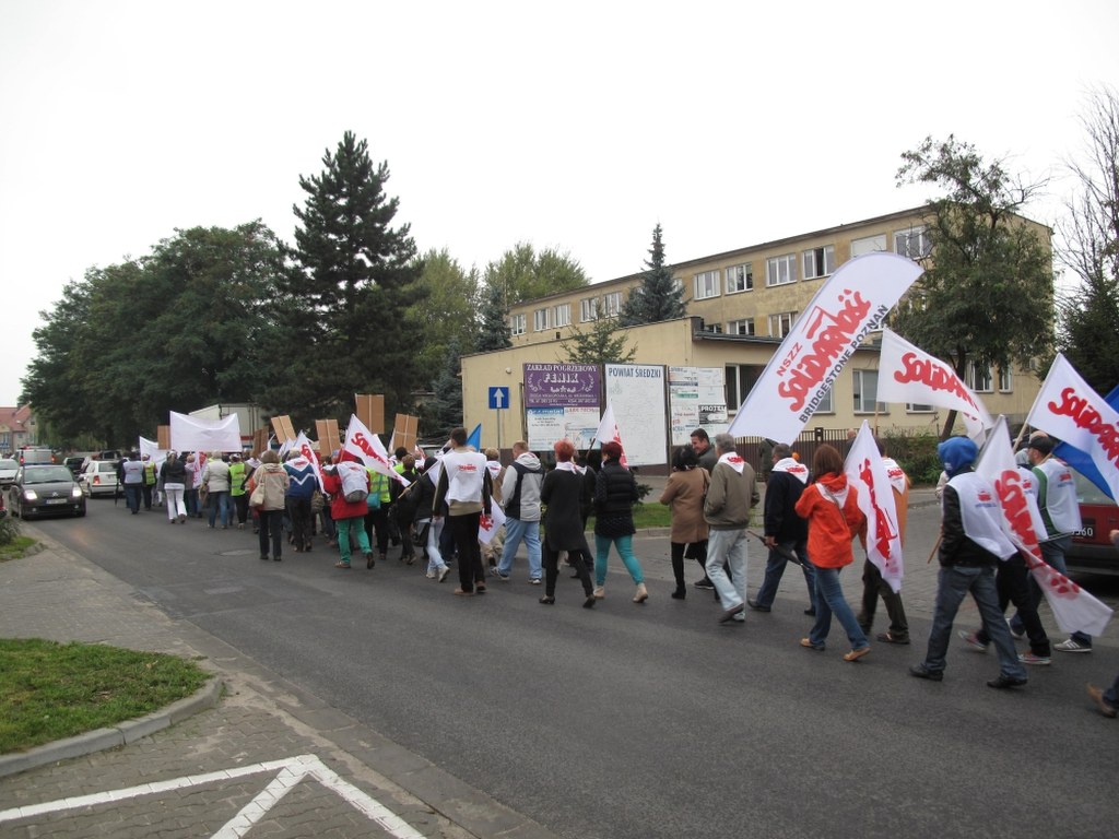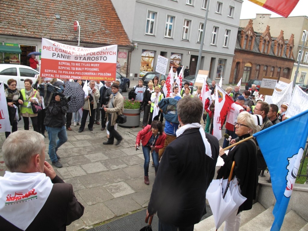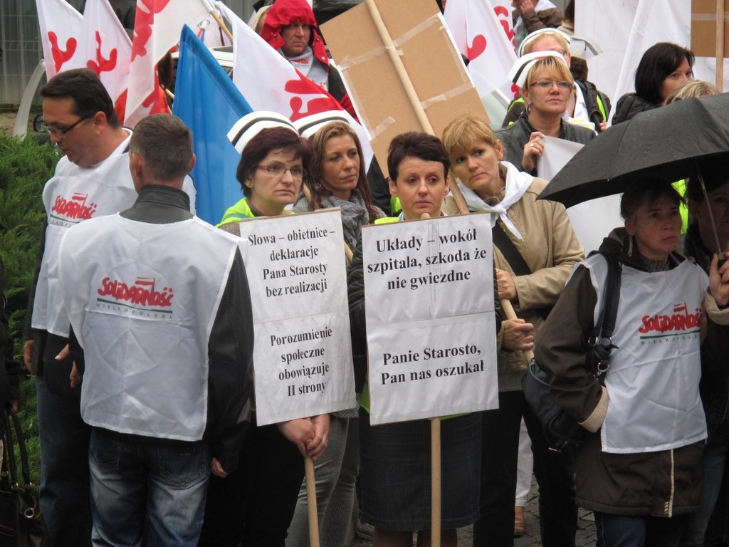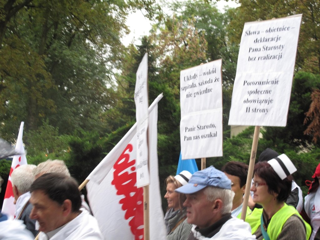 Ponad stu pracowników szpitala i mieszkańców Środy Wielkopolskiej przeszło w proteście sprzed lecznicy pod budynek starostwa. Chodzi o wielki dług Szpitala Średzkiego, który sięga 10 milionów złotych. Związkowcy twierdzą, że władze powiatu wielokrotnie obiecywały załatwienie tego problemu, m.in. za sprawą rządowego funduszu na restrukturyzację szpitali. Zadłużenie się jednak nie zmniejsza. Manifestacja skończyła się pod budynkiem Starostwa Powiatowego w Środzie Wielkopolskiej, ale nikogo z zarządu powiatu nie było. Związkowcy przywiesili swoje postulaty razem z flagą Solidarności przy wejściu do budynku.