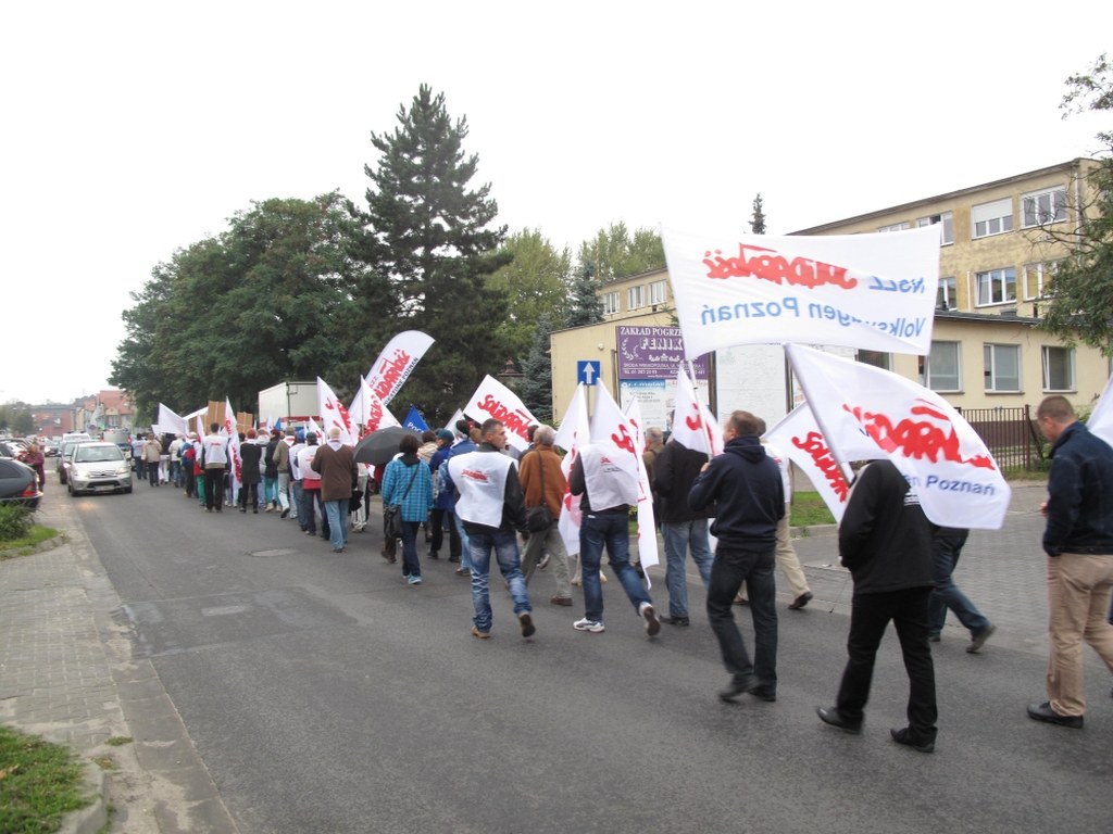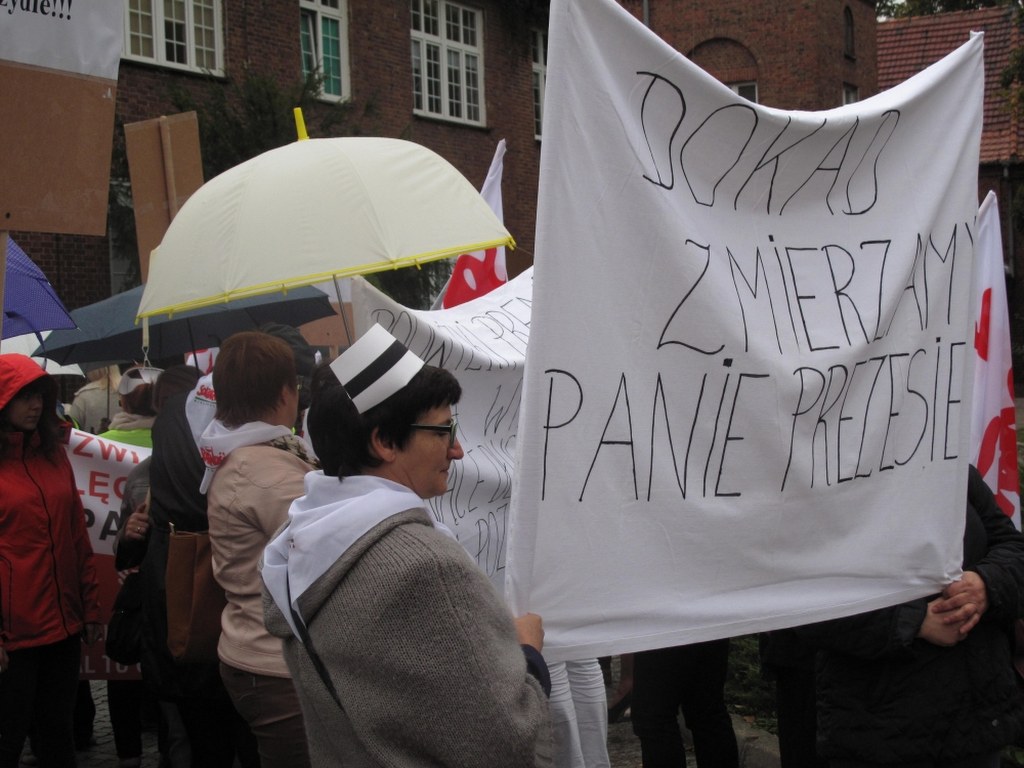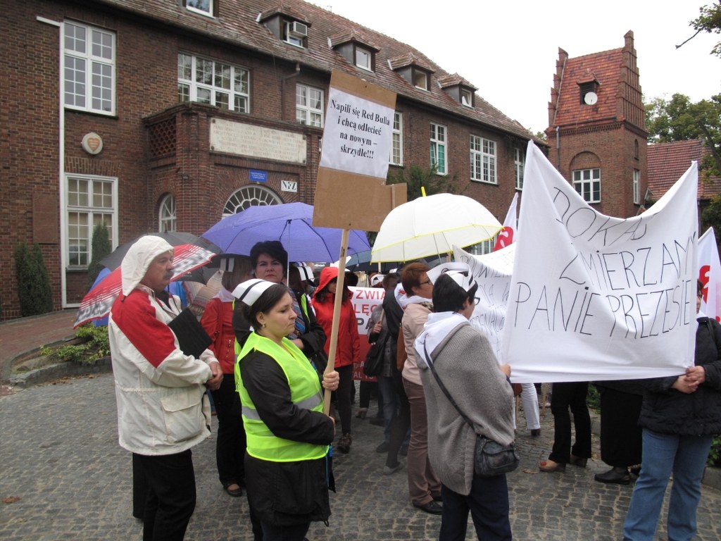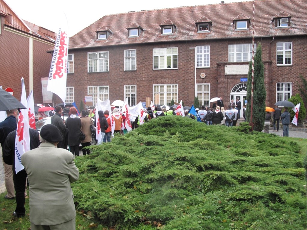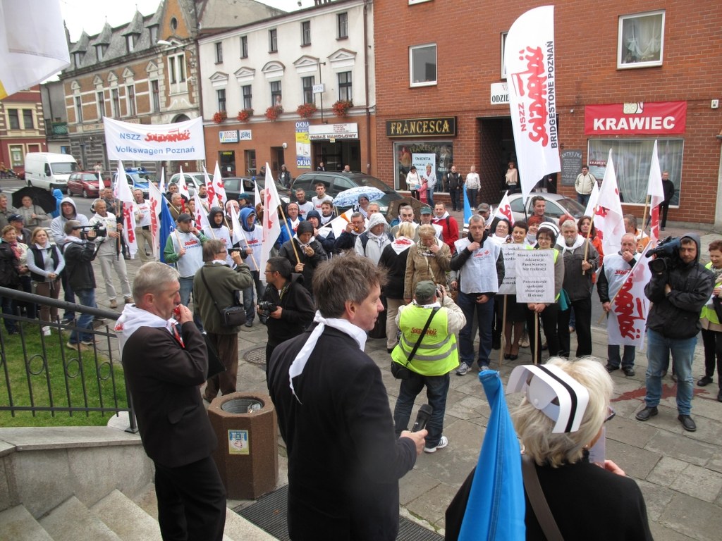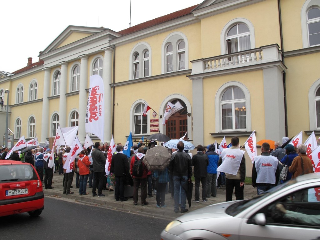Ponad stu pracowników szpitala i mieszkańców Środy Wielkopolskiej przeszło w proteście sprzed lecznicy pod budynek starostwa. Chodzi o wielki dług Szpitala Średzkiego, który sięga 10 milionów złotych. Związkowcy twierdzą, że władze powiatu wielokrotnie obiecywały załatwienie tego problemu, m.in. za sprawą rządowego funduszu na restrukturyzację szpitali. Zadłużenie się jednak nie zmniejsza. Manifestacja skończyła się pod budynkiem Starostwa Powiatowego w Środzie Wielkopolskiej, ale nikogo z zarządu powiatu nie było. Związkowcy przywiesili swoje postulaty razem z flagą Solidarności przy wejściu do budynku.