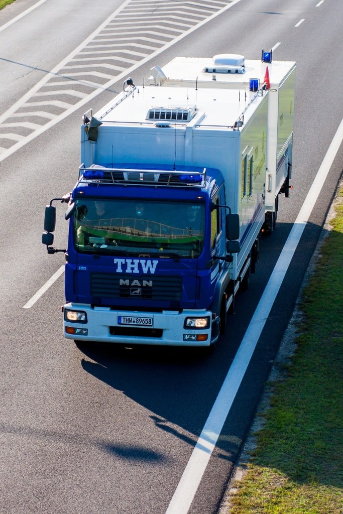 Konwój ciężarówek niemieckich służb THW z pomocą dla Ukrainy przejeżdża autostradą A2 do Poznania. Po przekroczeniu granicy został on podzielony na mniejsze grupy, aby zapobiec utrudnieniom w ruchu drogowym.