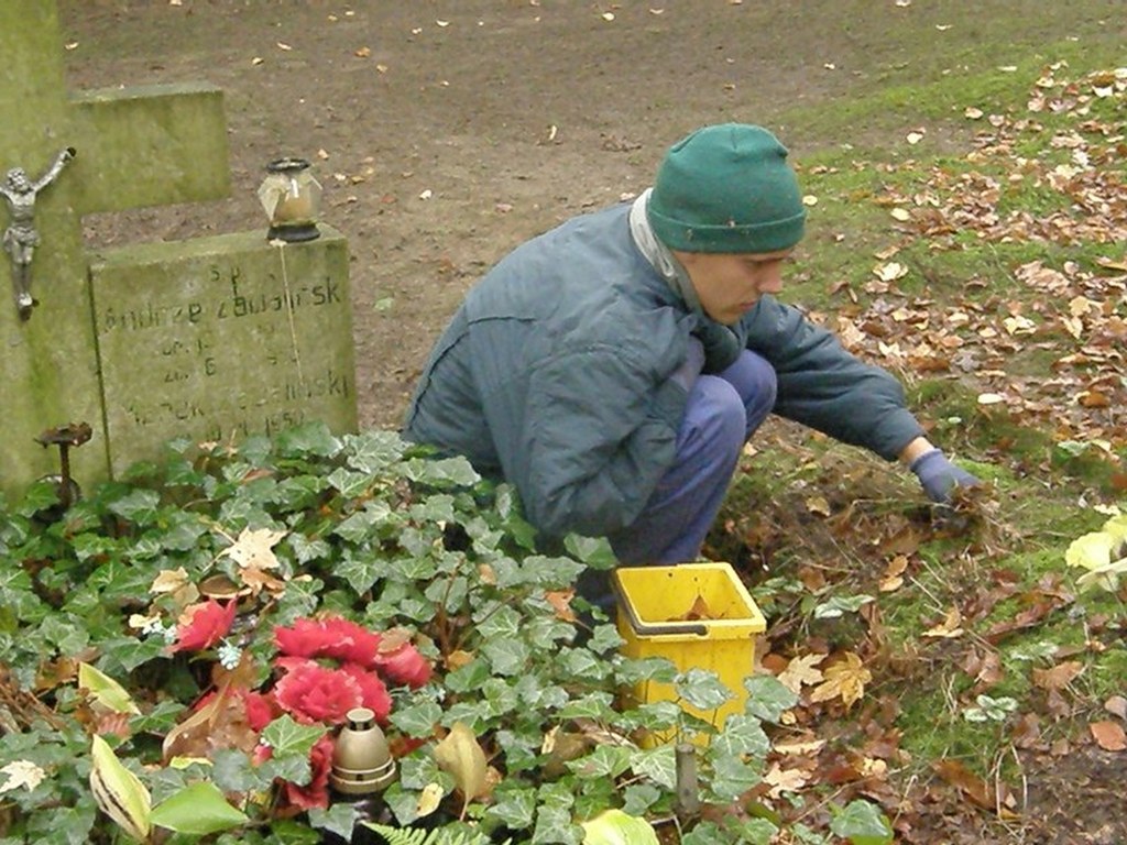 Przez dwa miesiące 30 niepełnosprawnych umysłowo osób porządkuje nagrobki. Dla nich to element terapii, dla zarządcy szczecińskich cmentarzy czysty zysk.