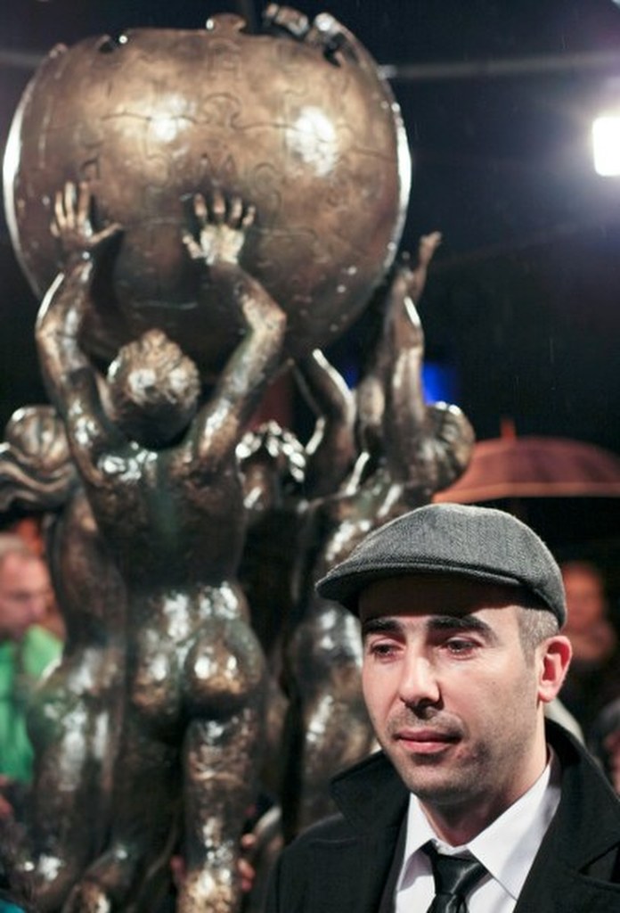 Pierwszy na świecie pomnik Wikipedii stoi w Słubicach. Dwumetrowa rzeźba przedstawia logo Wikipedii – niedokończoną kulę z puzzli trzymaną w górze przez dwie kobiety i dwóch mężczyzn. Ludzie stoją na stosie książek. Postument zaprojektował Mihran Hakobian, Ormianin, były student Uniwersytetu Viadrina – pomysł postawienia tego wyjątkowego pomnika pojawił się na tej polsko-niemieckiej uczelni, a sfinansowało go miasto Słubice.