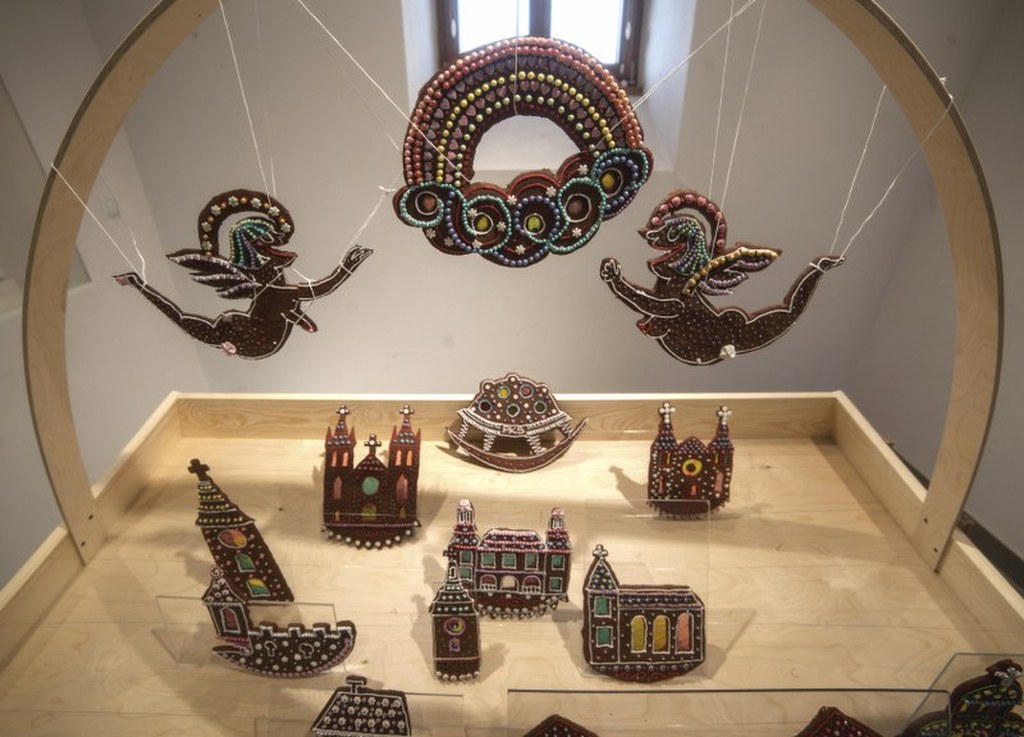 Autorskie warsztaty pieczenia pierników Joanny Biskup Brykczyńskiej w Kielcach. Kształty form do ciastek przygotowanych przez instruktorkę, nawiązują do typowych kieleckich budynków, które po upieczeniu utworzą piernikowe miasto.