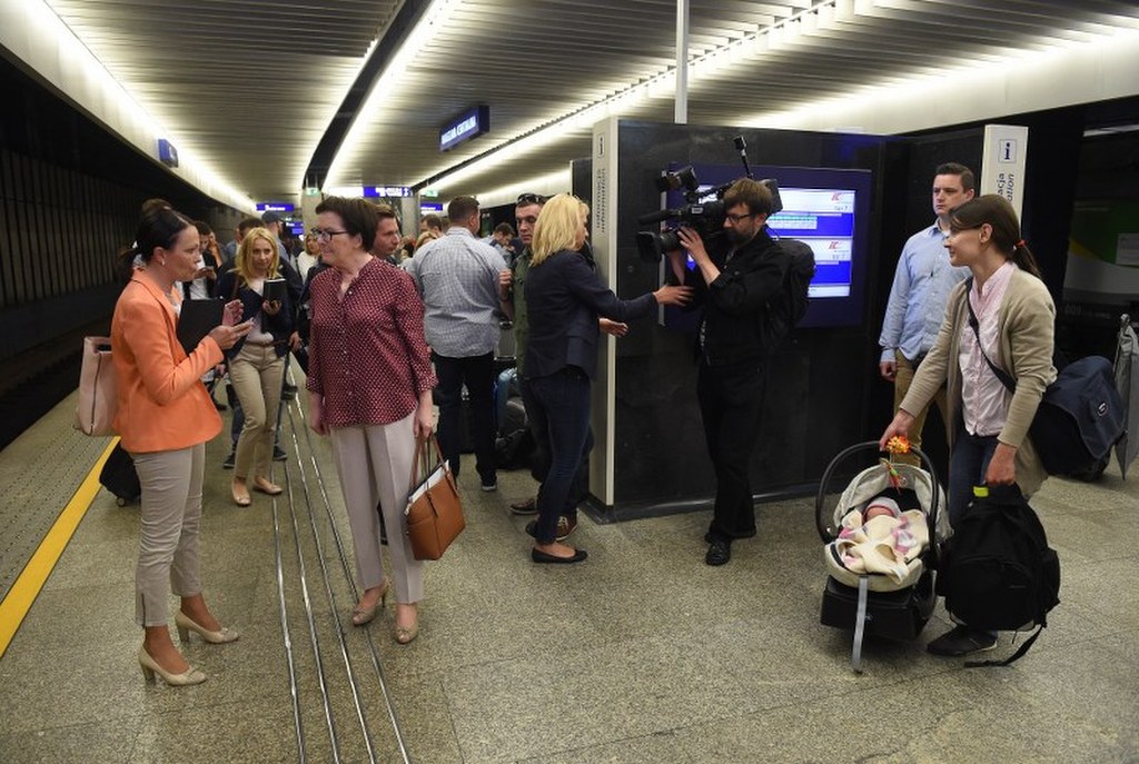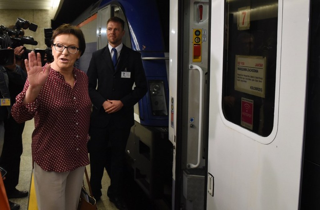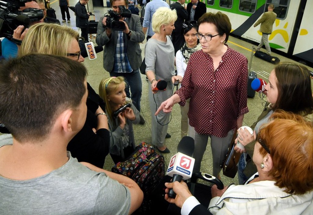 Premier Ewa Kopacz wzięła udział w konferencji prasowej na Dworcu Centralnym w Warszawie przed wyjazdem do województwa pomorskiego. Podróż pociągiem po Polsce odbywać się będzie w ramach kampanii parlamentarnej pod hasłem "Kolej na Ewę".