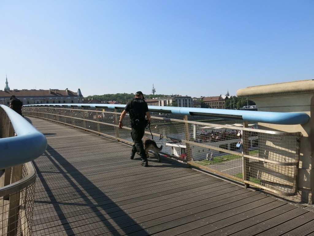 Specjalnie przeszkolony pies wykrył ładunek wybuchowy w jednym z koszy na śmieci w pobliżu kładki Bernatki w Krakowie. Na szczęście to tylko scenariusz ćwiczeń służb ratowniczych. Kładka została otoczona przez policję i zagrodzona taśmami. Na miejsce przyjechali antyterroryści i pirotechnicy.