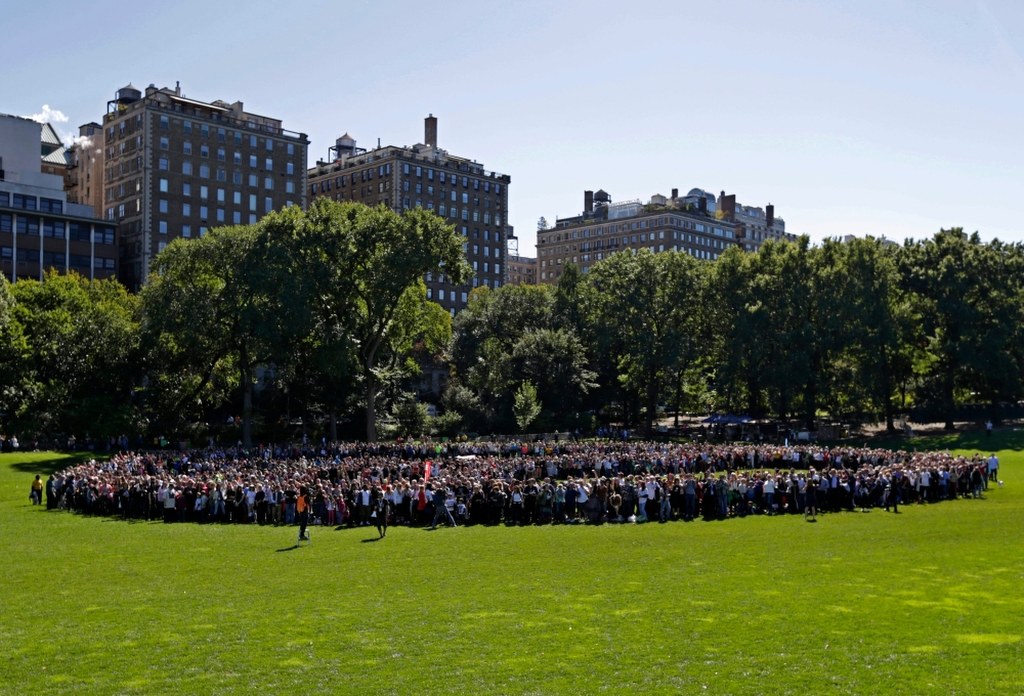 Tysiące ludzi zebrało się w nowojorskim Central Parku, żeby uformować największy na świecie znak pokoju. Pacyfa powstała z okazji 75. urodzin Johna Lennona. Jedną z organizatorek wydarzenia była jego żona, Yoko Ono. Przedstawiciele Księgi Rekordów Guinnessa twierdzą, że w parku zebrało się ponad 2 tys. osób. Niestety, rekordu pobić się nie udało – wymagano obecności co najmniej 5 tys. osób.