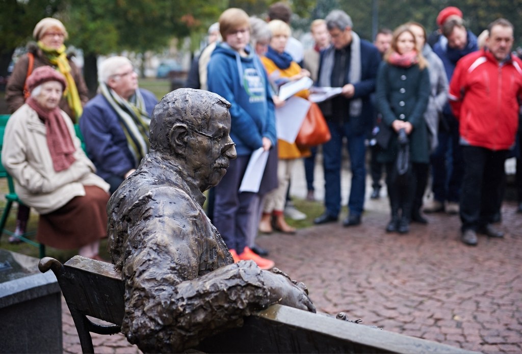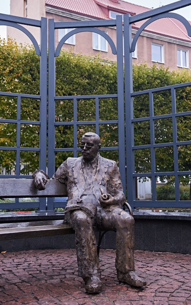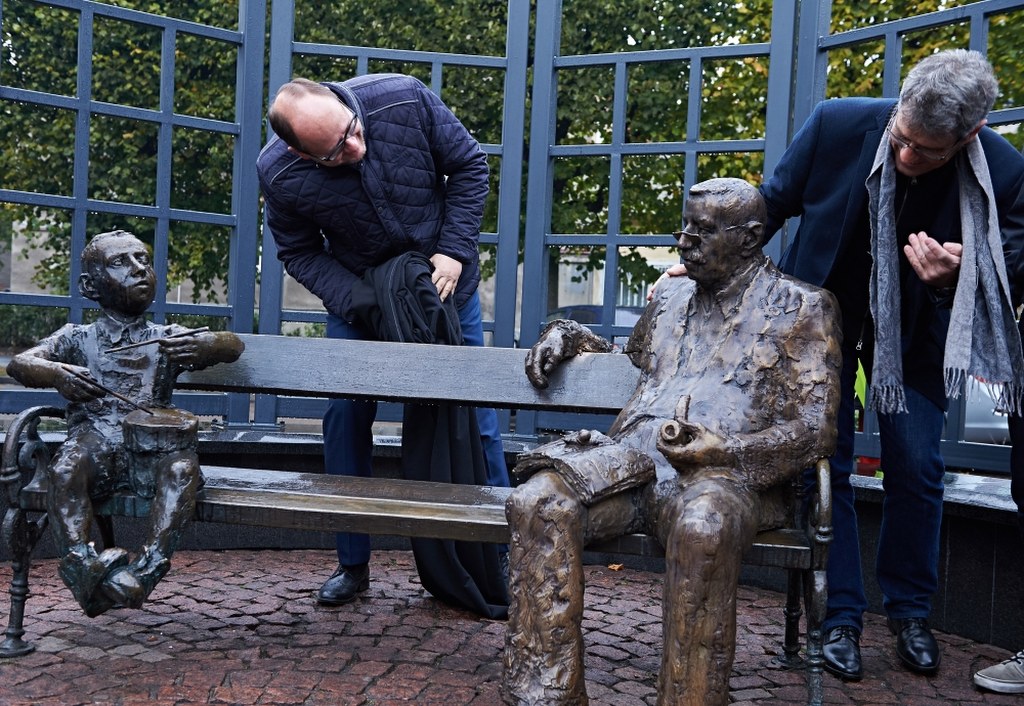 Pomnik Guentera Grassa autorstwa prof. Sławoja Ostrowskiego został odsłonięty obok figury Oskara z "Blaszanego bębenka" w Gdańsku. Pomnik noblisty przedstawia pisarza z książką opartą na kolanie oraz charakterystyczną dla niego fajką.
