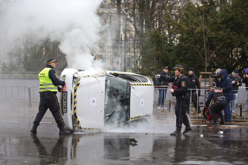 Pokaz ratownictwa drogowego w Warszawie. To finał kampanii społecznej "3 Kolory", która miała przypomnieć niektórym kierowcom znaczenie kolorów w sygnalizacji świetlnej.