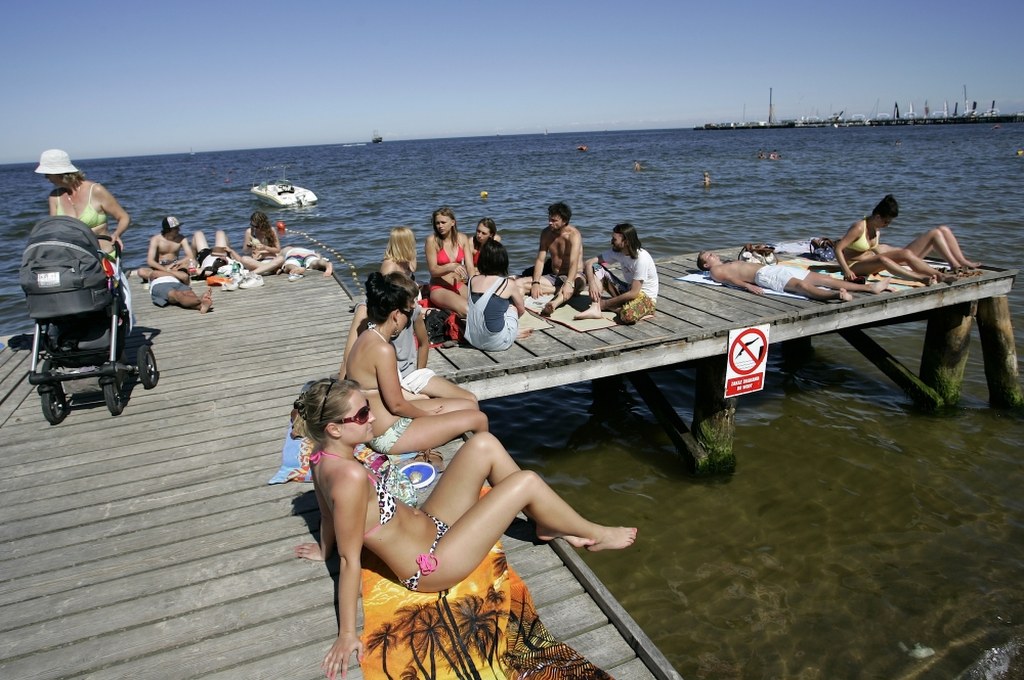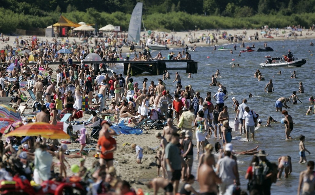 Piękna, słoneczna pogoda przyciągnęła tłumy plażowiczów nad morze w Sopocie. Ciepło jest w wielu nadmorskich miejscowościach, chociaż temperatura Bałtyku (około 15 st. C.) niekoniecznie zachęca do kąpieli.