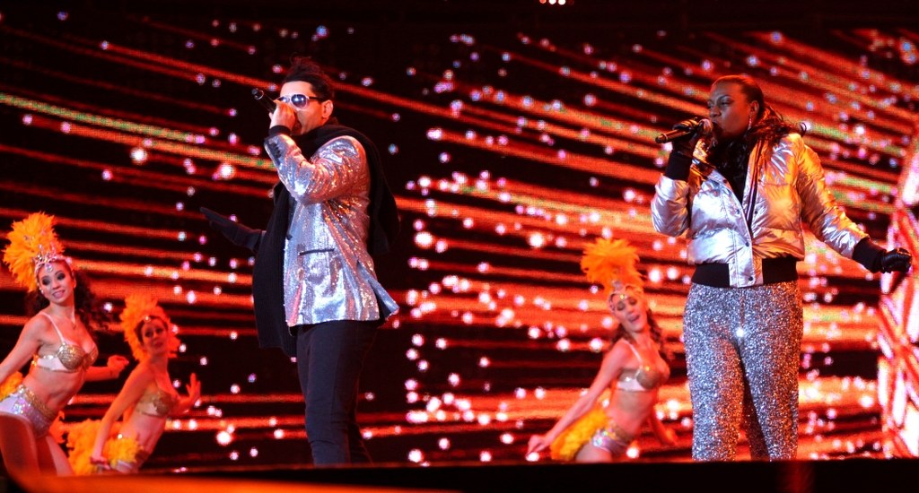 Tancerki, podczas występu zespołu Boney M. w ramach Sylwestrowej Mocy Przebojów 2015 / fot. PAP/Andrzej Grygiel / PAP