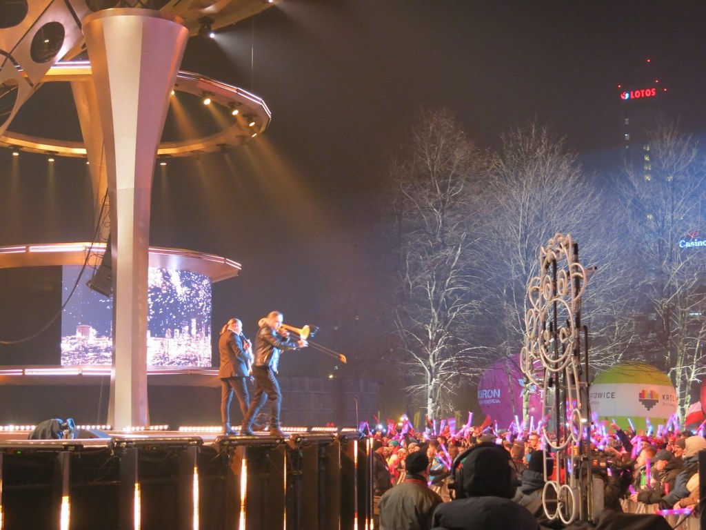 Orkiestra górnicza podczas występu z zespołem Piersi / fot. PAP/Andrzej Grygiel / PAP