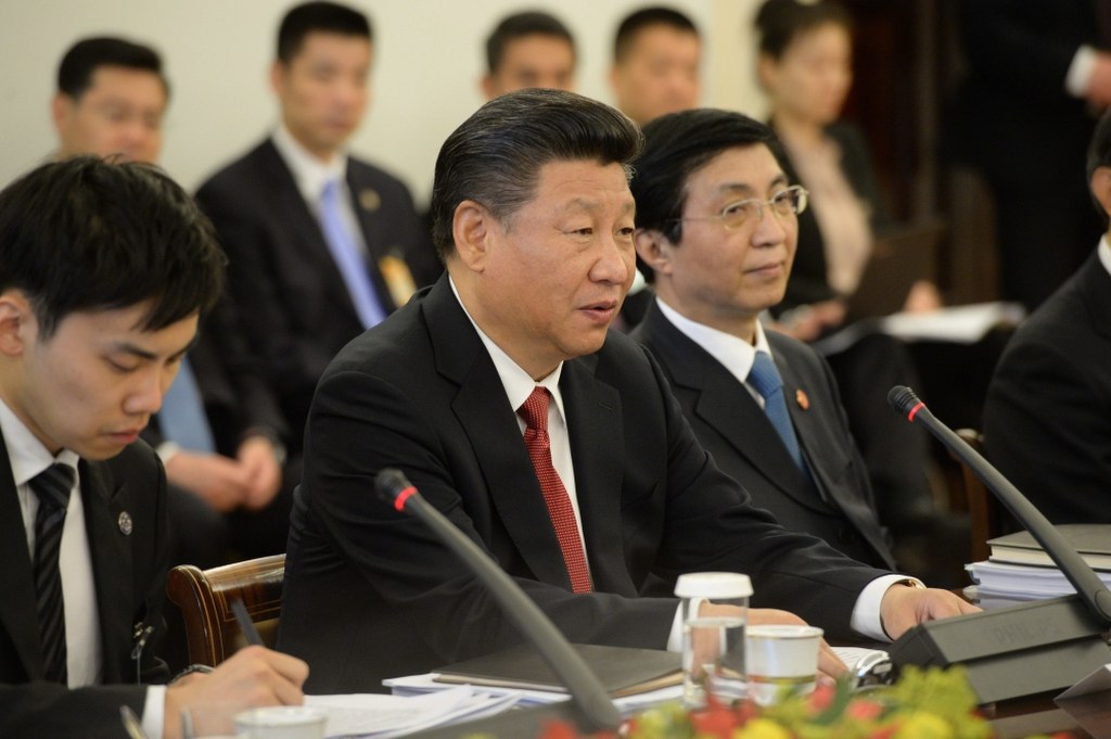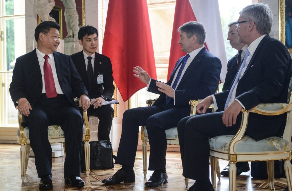 Przewodniczący Chińskiej Republiki Ludowej Xi Jinping (C), podczas rozmów plenarnych delegacji Chin i Polski w Pałacu Prezydenckim w Warszawie / fot. Jacek Turczyk / PAP