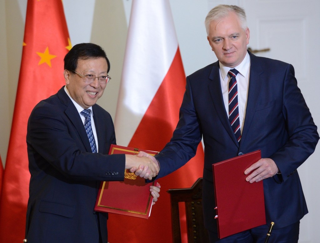 Wicepremier, minister nauki Jarosław Gowin i wiceminister oświaty Chin Hao Ping, podczas podpisania umowy pomiędzy rządem RP a ChRL w sprawie wzajemnego uznawania dyplomów i stopni naukowych w szkolnictwie wyższym / fot. Jacek Turczyk / PAP