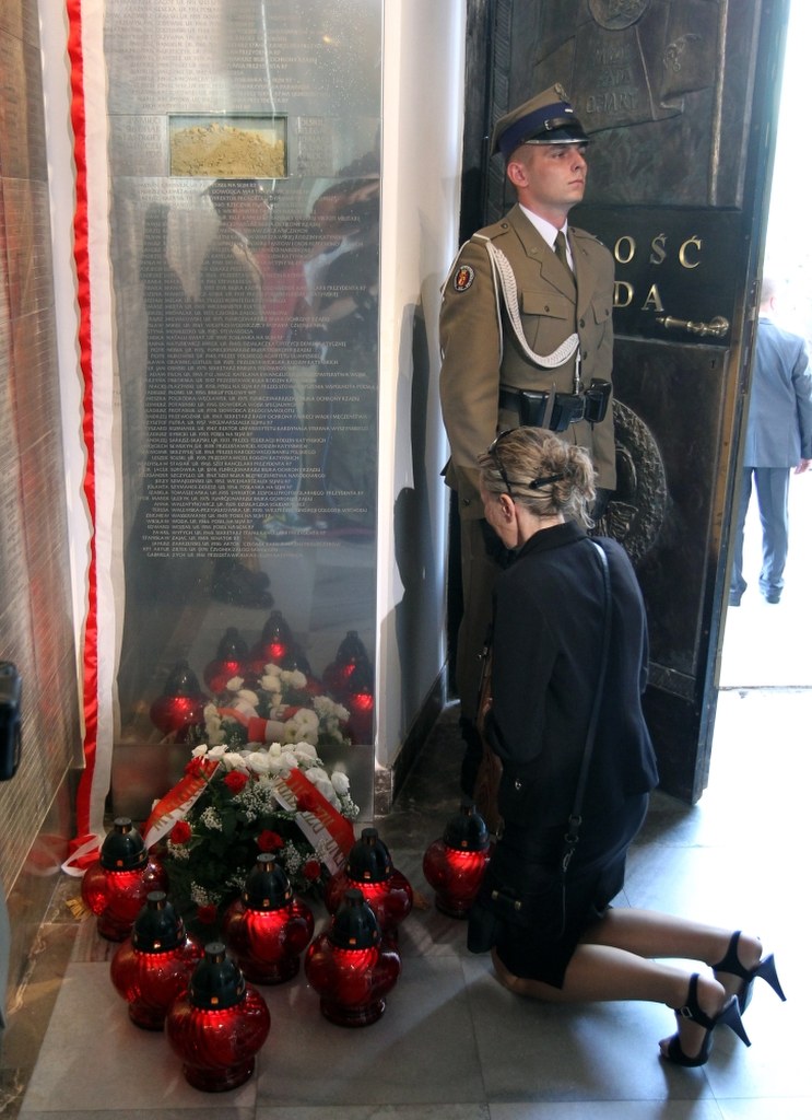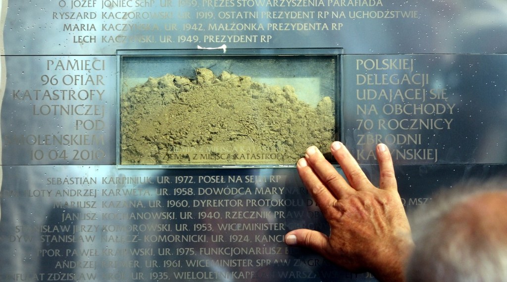 Na tablicy znajdują się nazwiska 96 osób, które zginęły pod Smoleńskiem. / PAP
