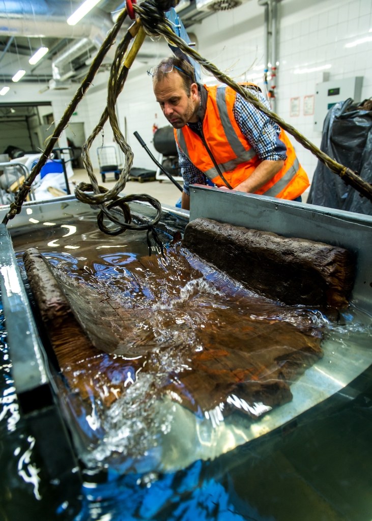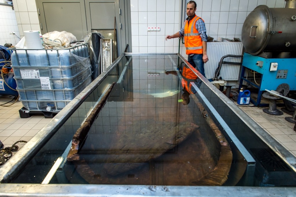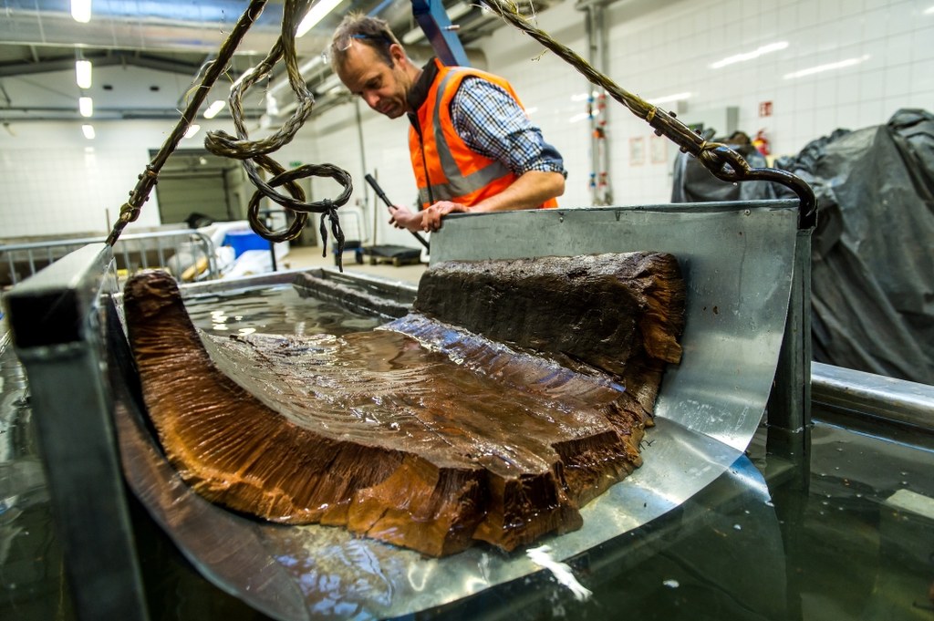 Prace konserwatorskie łodzi z czasów Mieszka I