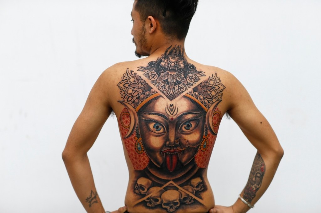 Tatuaż wykonany przez Anish Shakya / fot. NARENDRA SHRESTHA (PAP/EPA) / PAP/EPA