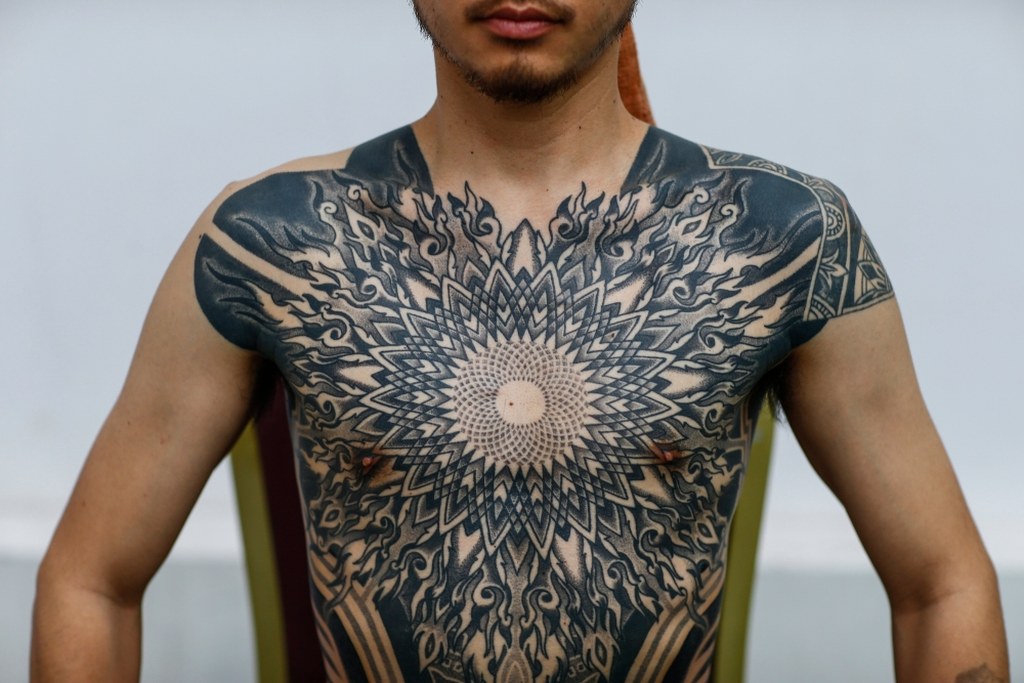 Tatuaż wykonany przez Nayoya Shibata / fot. NARENDRA SHRESTHA (PAP/EPA) / PAP/EPA