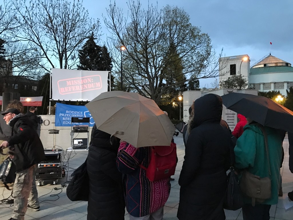 "Misja: referendum" - pod takim hasłem przed Sejmem odbyła się manifestacja rodziców przeciwko planowanej likwidacji gimnazjów. W tym tygodniu do Sejmu trafił wniosek o referendum ws. reformy oświaty. Zebrano pod nim ponad 900 tysięcy podpisów.