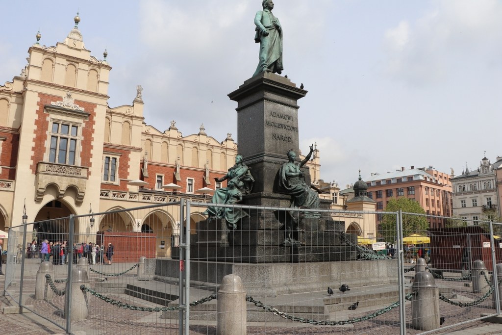 Pomnik Adama Mickiewicza przy krakowskich Sukiennicach przejdzie gruntowną renowację. W środę został otoczony ogrodzeniem, a w piątek pojawi się rusztowanie. Dostęp do pomnika wieszcza do końca czerwca będzie utrudniony. Turyści nie usiądą nawet na otaczających go schodach.