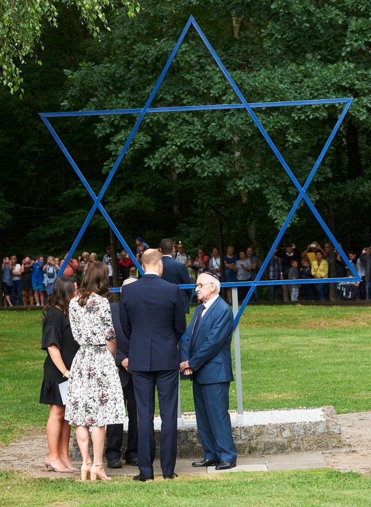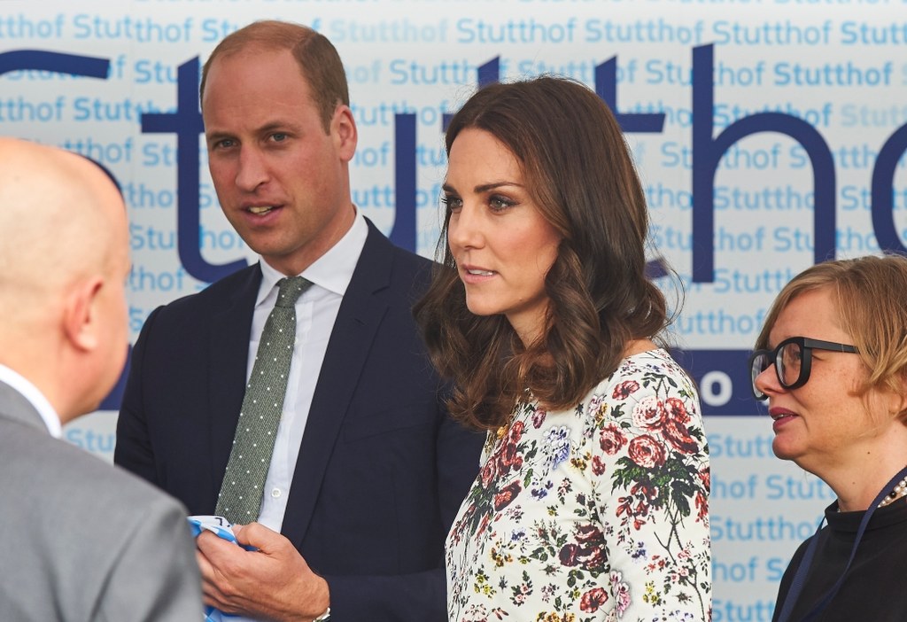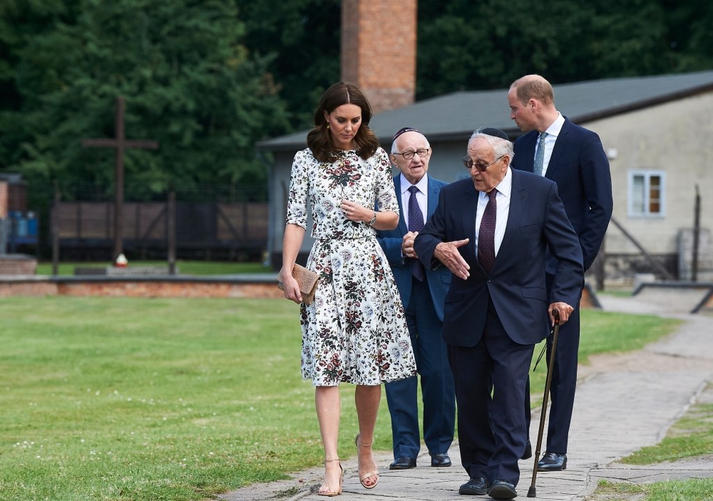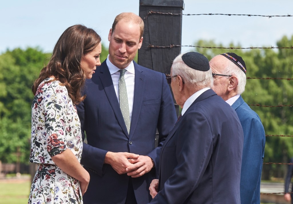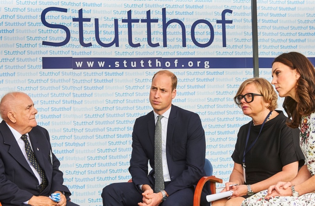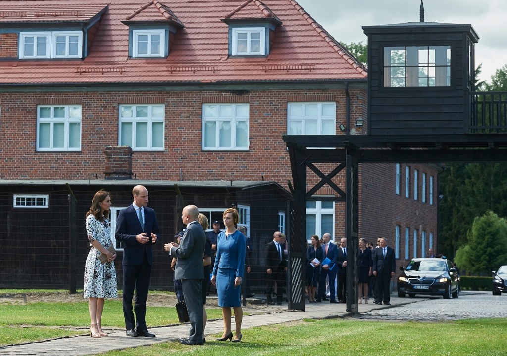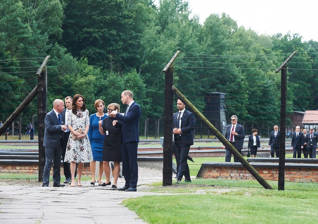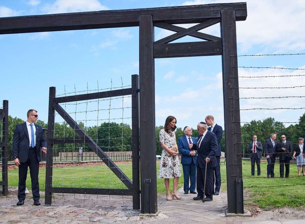 Wizyta Księcia i Księżnej Cambridge w Polsce - dzień drugi. Księżna Catherine (L) i książę William (2L) zwiedzają teren byłego niemieckiego obozu koncentracyjnego Stutthof. / fot. Dominik Kulaszewicz / PAP