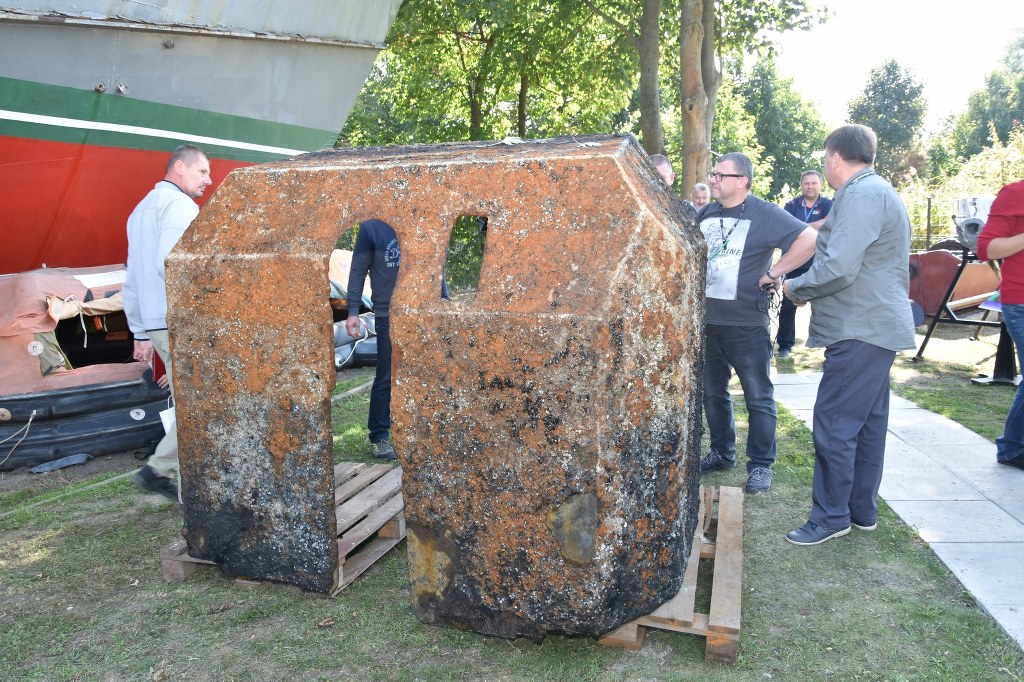 Kołobrzeg: Olbrzymia osłona działa wydobyta z wraku z dna Bałtyku