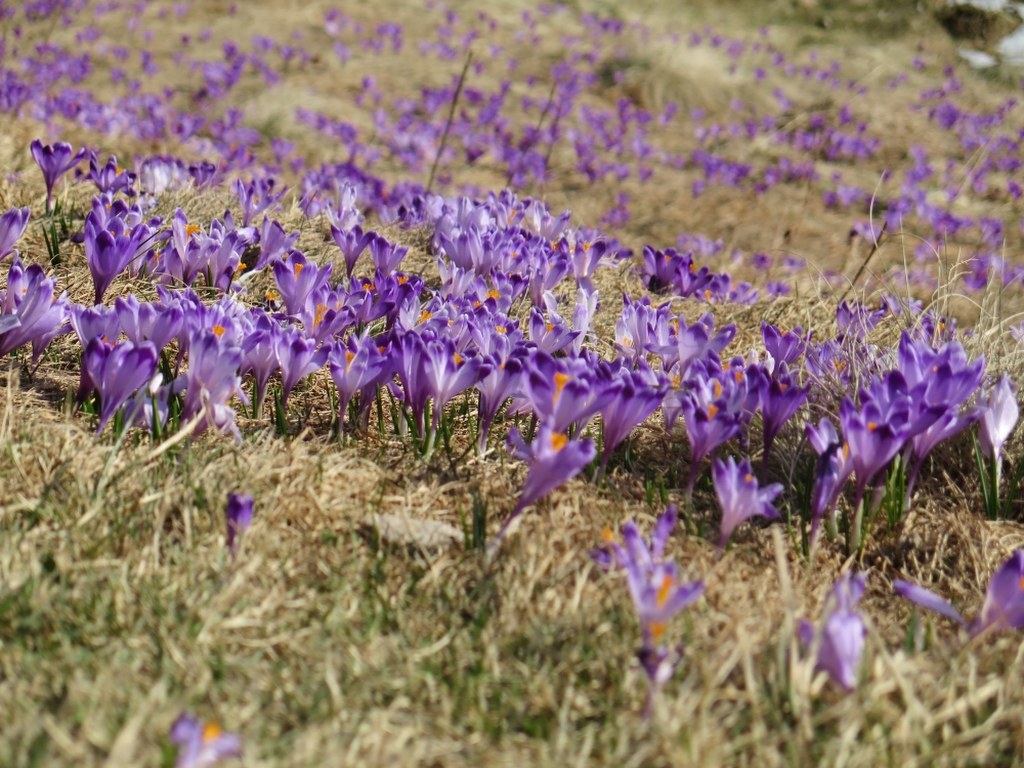 Na Polanie Chochołowskiej coraz więcej krokusów