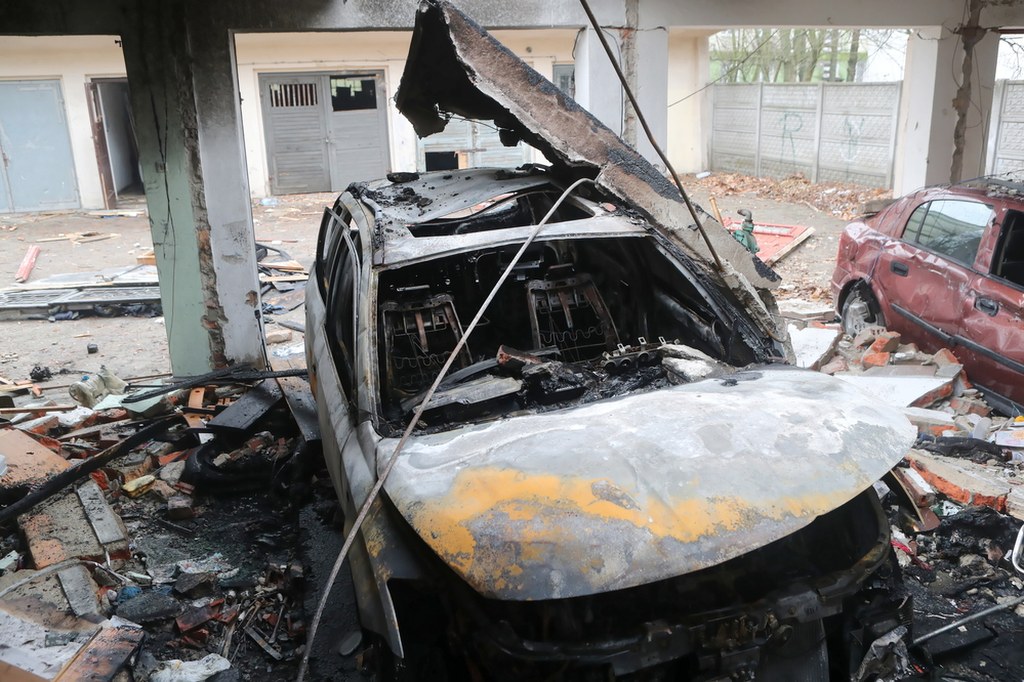 Garaż, gdzie w nocy z czwartku na piątek spłonęły się cztery auta w Łodzi. Straż pożarna dostała zgłoszenie o godz. 2 w nocy. Jak wiadomo, pożar poprzedziła eksplozja. W wybuchu nikt nie ucierpiał, trwa ustalanie przyczyn zdarzenia