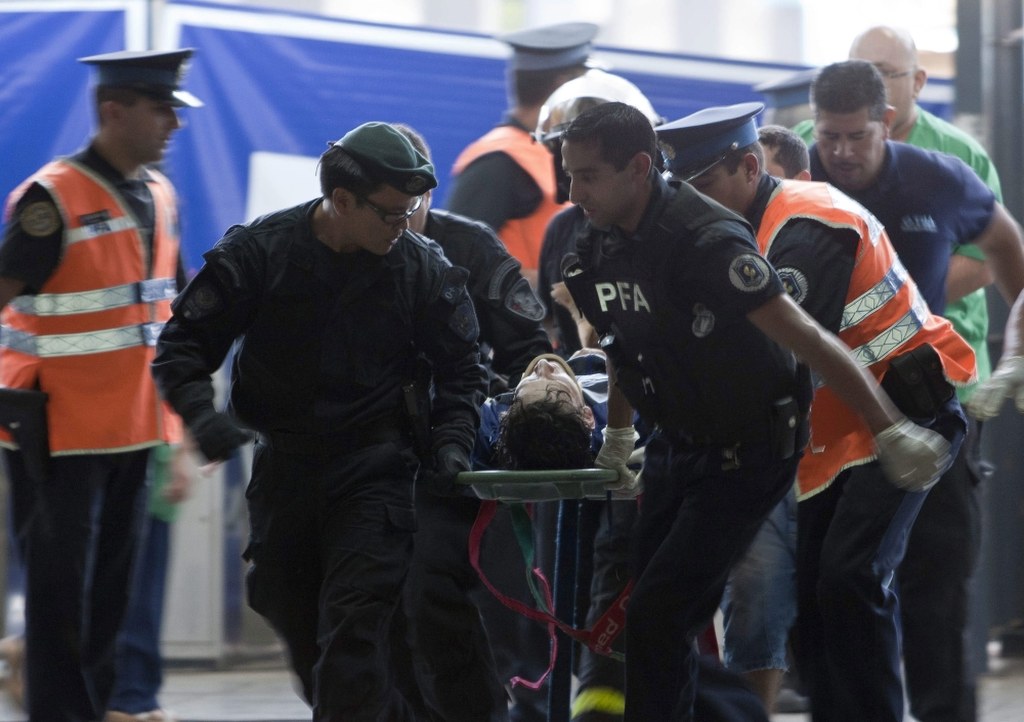 Jedna z rannych pasażerek przewożona do szpitala w Buenos Aires. / PAP/EPA