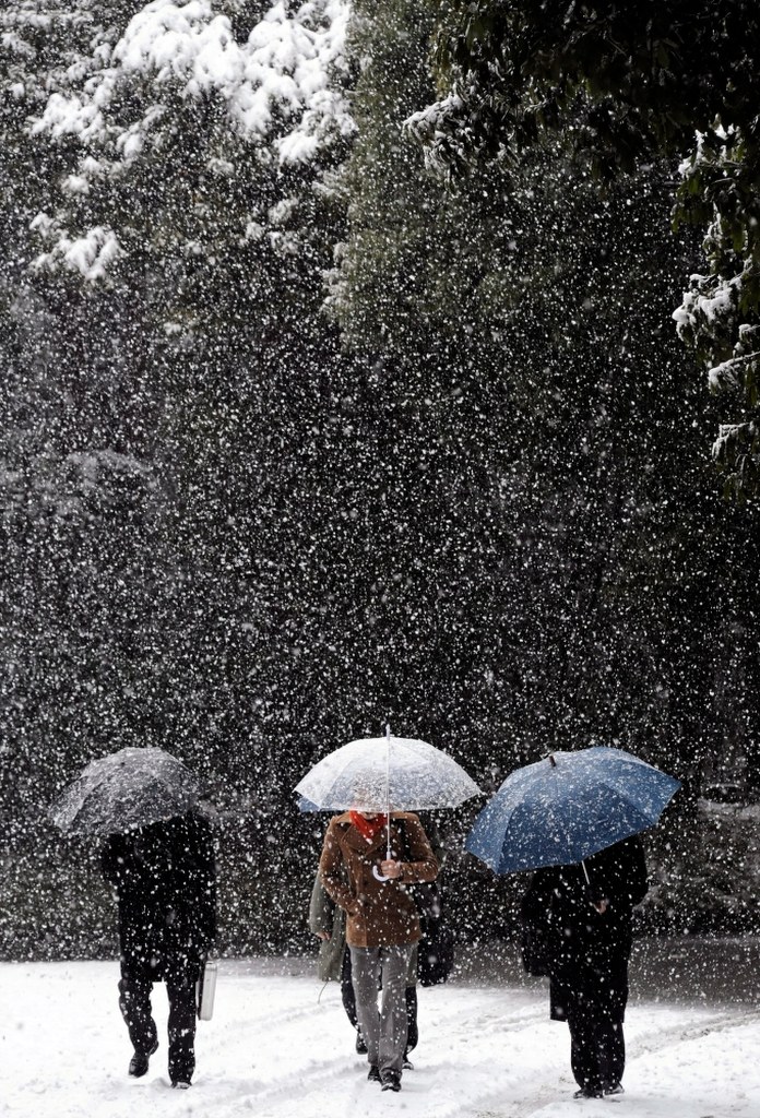 Jedni z parasolami, inni z łopatami - Japończycy borykają się ze śniegiem, który przykrył cztery wyspy ich kraju. Najwięcej problemów nagłe opady przyniosły mieszkańcom Tokio, gdzie utrudnienia w komunikacji miejskiej sprawiły, że część mieszkańców nie dotarła do pracy.