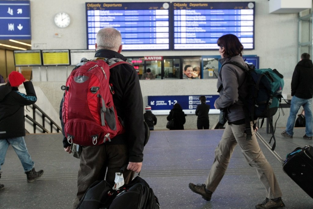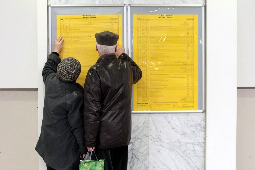 Pasażerowie sprawdzają rozkład na Dworcu Centralnym w Warszawie. / PAP/EPA