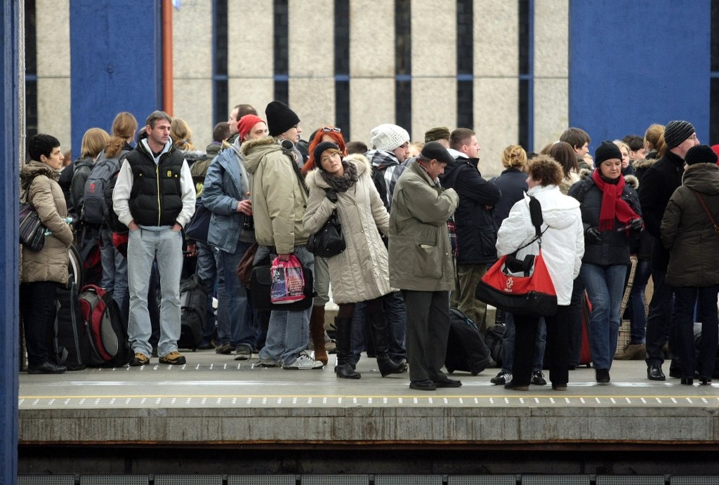 Pasażerowie czekają na spóźniony pociąg na Dworcu Centralnym w Warszawie. / PAP/EPA