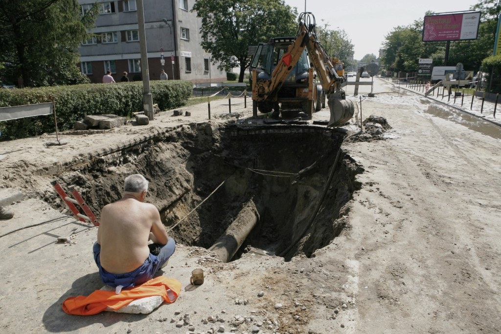 Prace w miejscu awarii przy ul. Braniborskiej we Wrocławiu / PAP