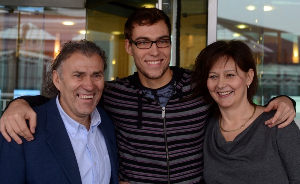 Janowicz wita się z rodzicami, Jerzym i Anną. / fot. PAP/ Bartłomiej Zborowski