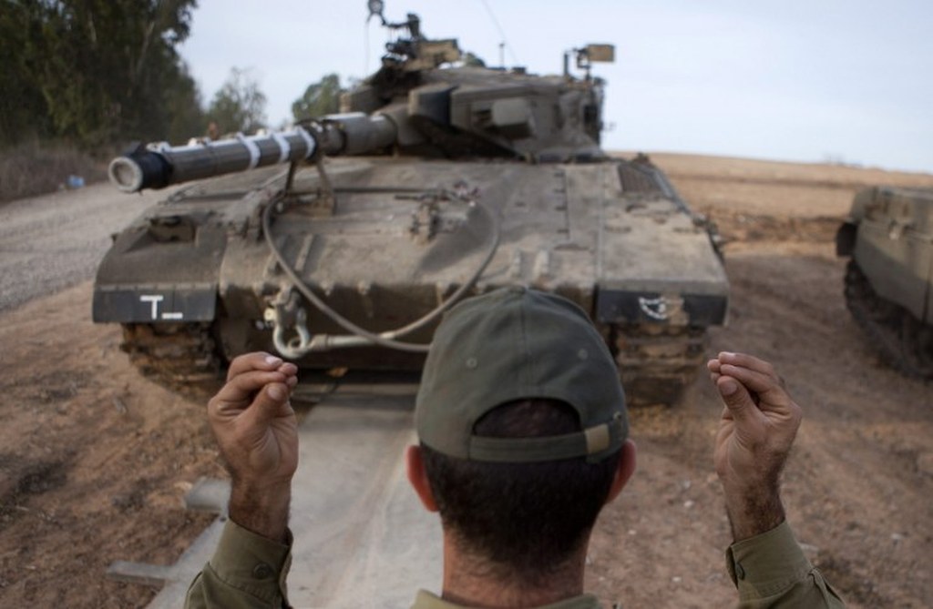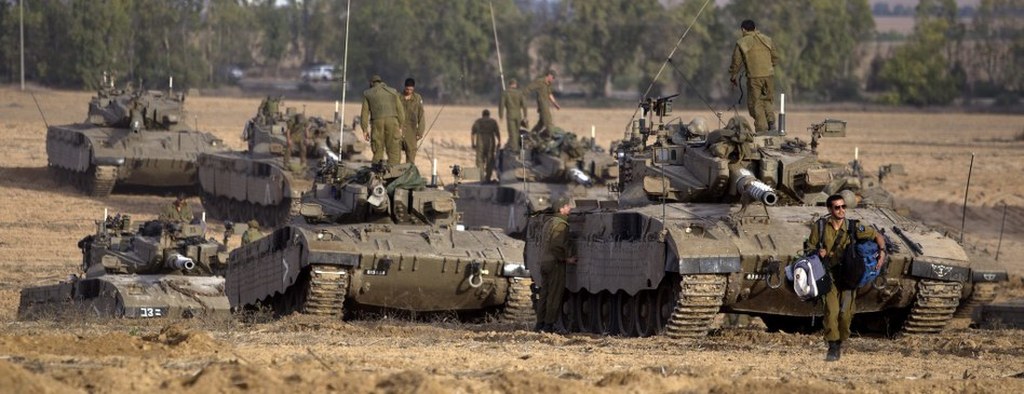 Postój izraelskich czołgów wzdłuż granicy w Strefie Gazy / fot. PAP/EPA