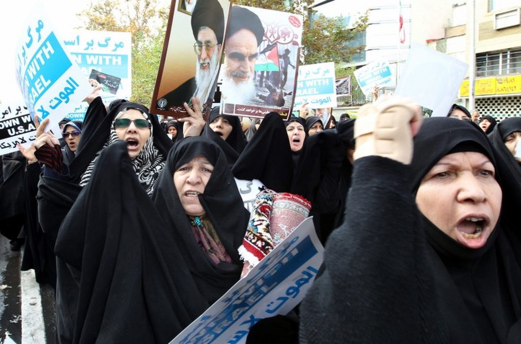 Irańskie kobiety demonstrują przeciwko irańskiej ofensywie w Strefie Gazy / fot. PAP/EPA