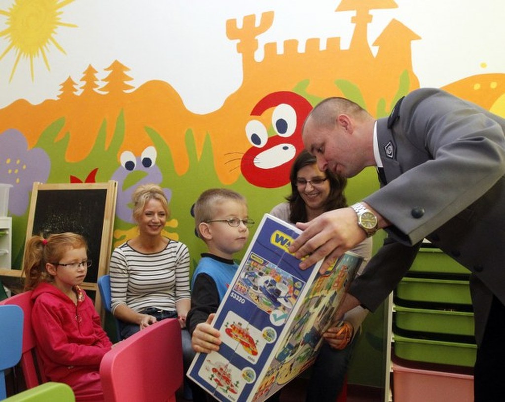 Policja wręczyła dzieciom drobne upominki. / fot. Andrzej Grygiel (PAP)