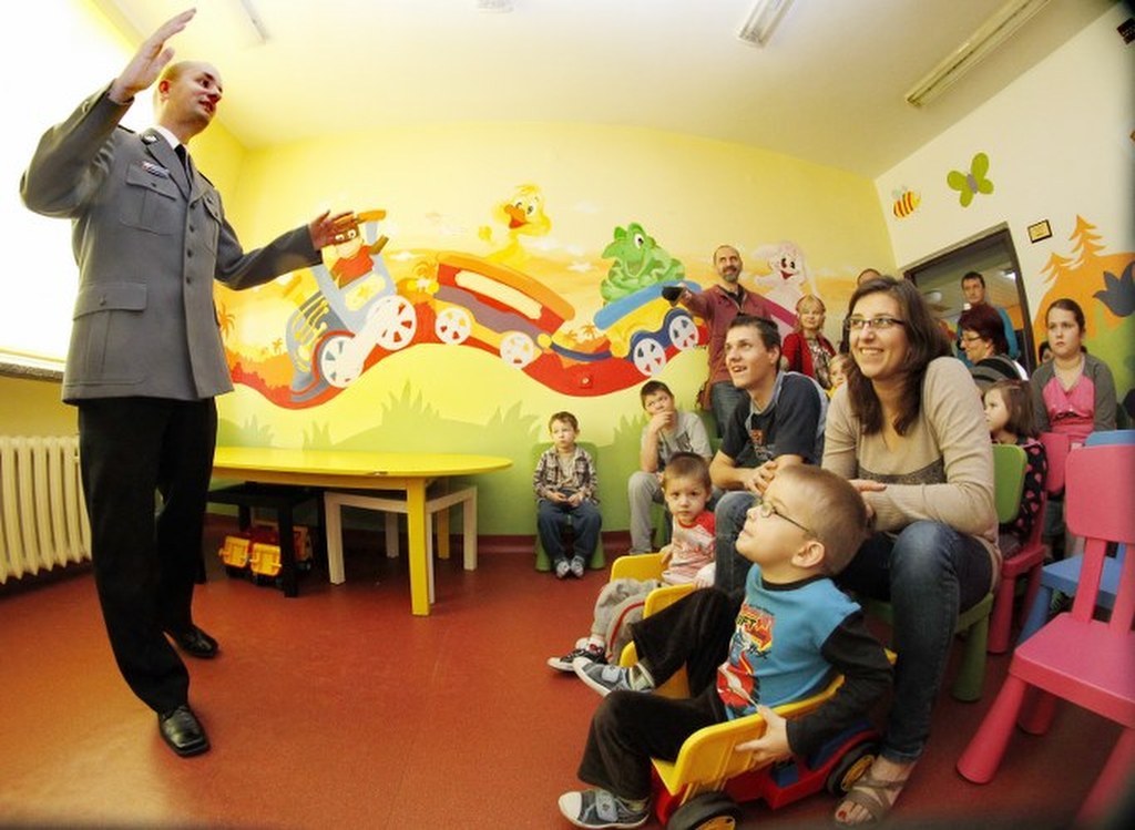 Podczas tej krótkiej wizyty policjanci pouczyli dzieci o bezpiecznym zachowaniu się na drodze / fot. Andrzej Grygiel (PAP)