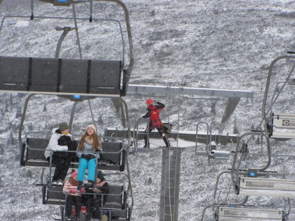 Pasażerowie wyciągu krzesełkowego, który się zatrzymał / fot. Maciej Pałahicki (RMF)
