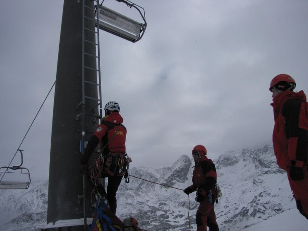 Ratownik TOPR wchodzący na słup wyciągu krzesełkowego / fot. Maciej Pałahicki (RMF)