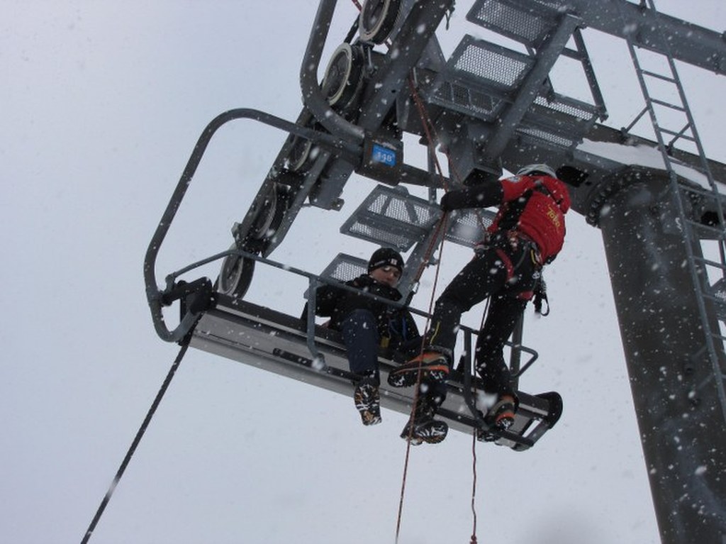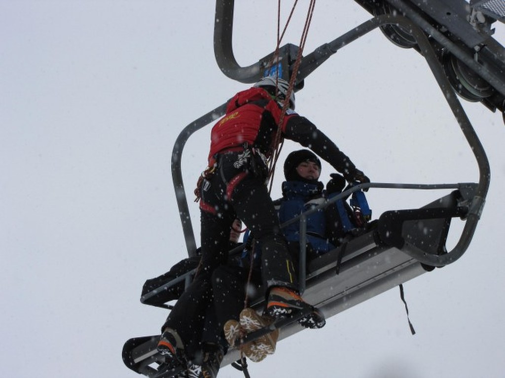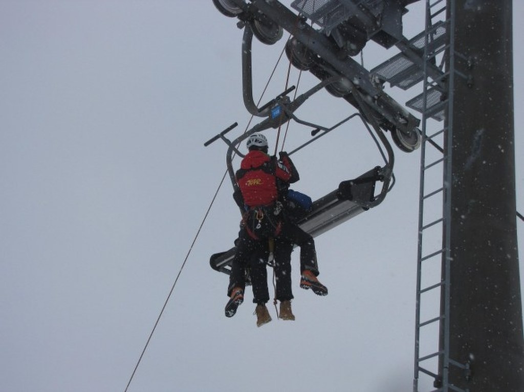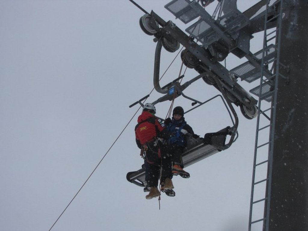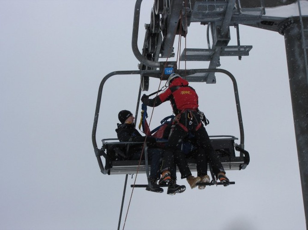 Ratownik ma ze sobą specjalną uprząż, dzięki której pasażerki bezpiecznie opuszczą wyciąg / fot. Maciej Pałahicki (RMF)