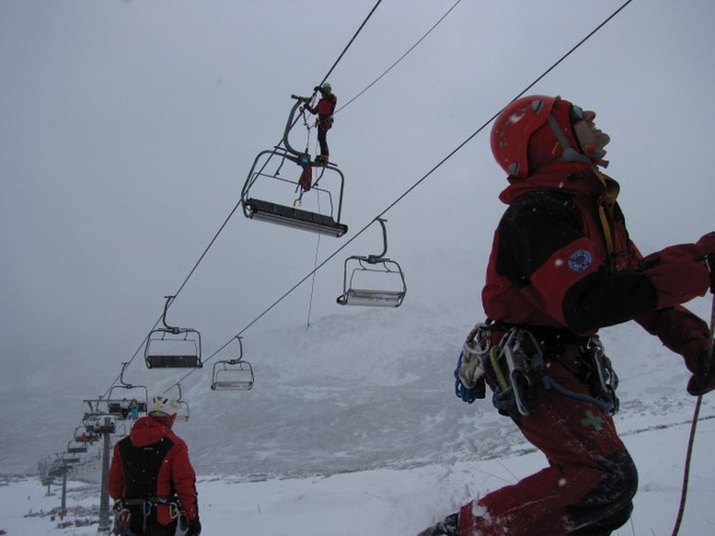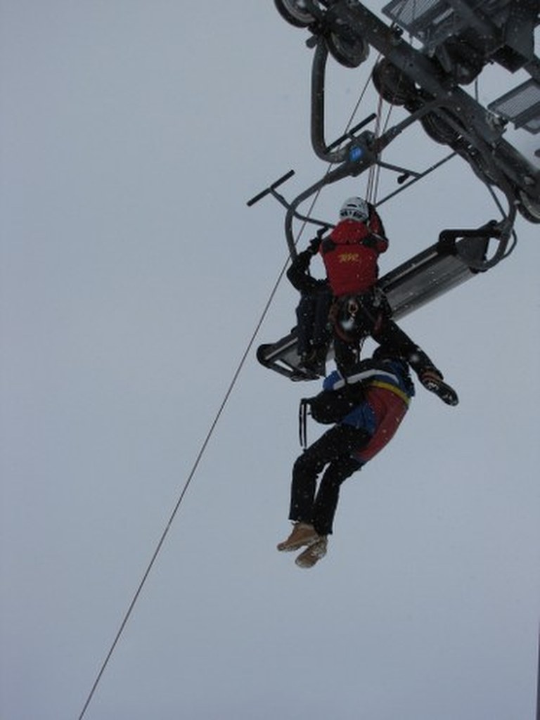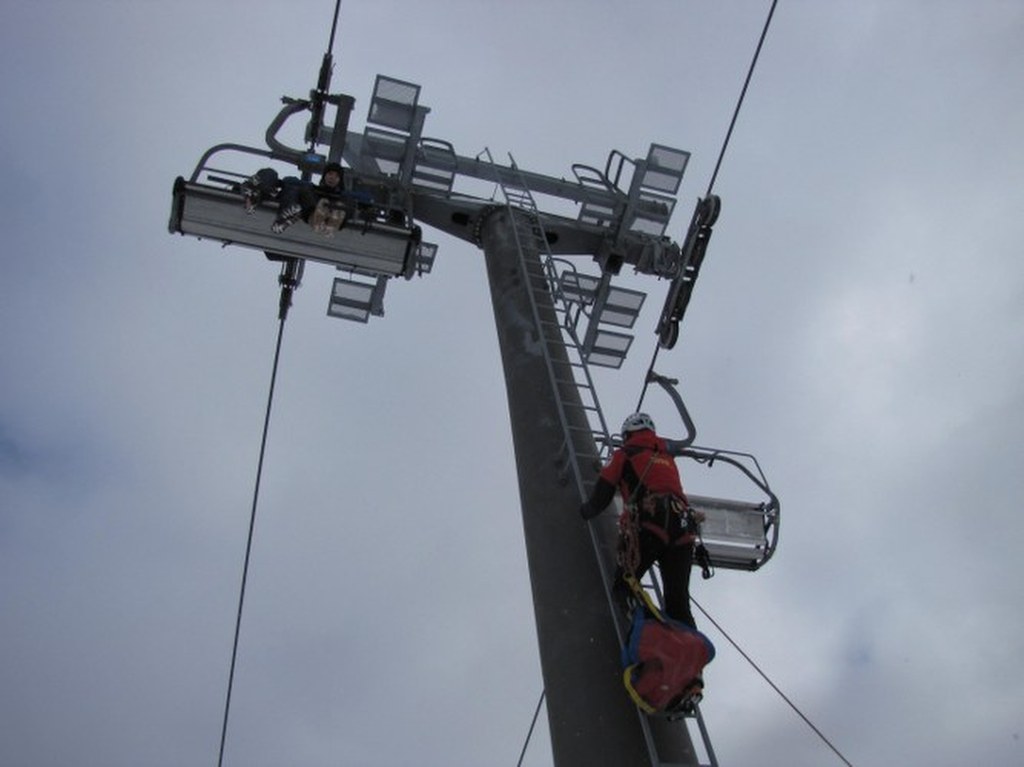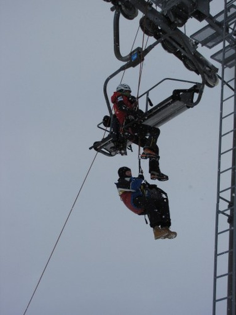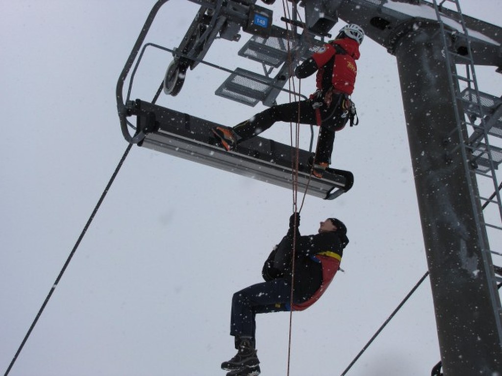 Ratownik ma ze sobą specjalną uprząż, dzięki której pasażerki bezpiecznie opuszczą wyciąg / fot. Maciej Pałahicki (RMF)