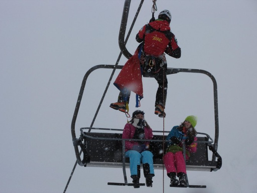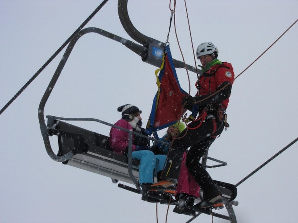 Ratownik TOPR pomagający pasażerkom kolejki krzesełkowej / fot. Maciej Pałahicki (RMF)